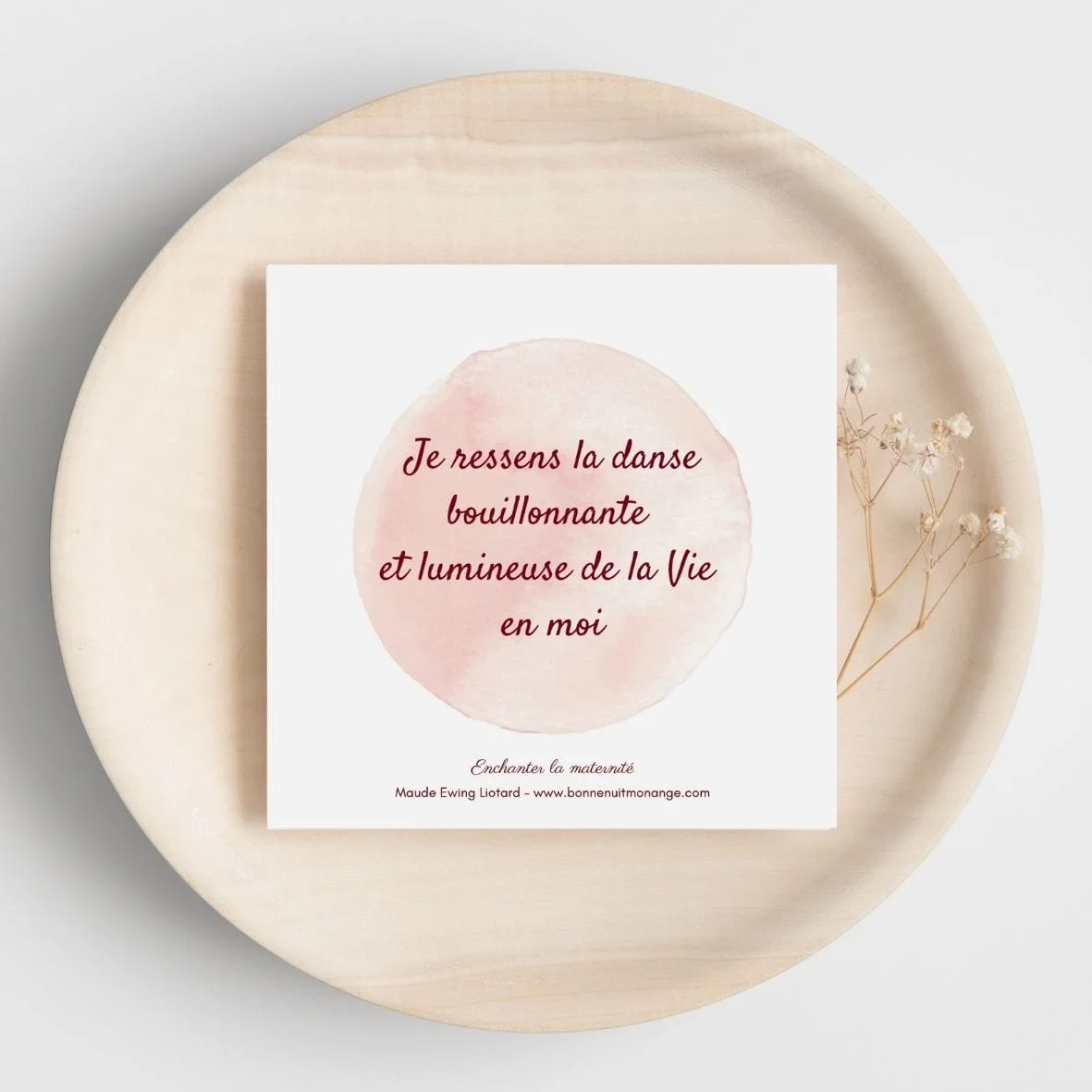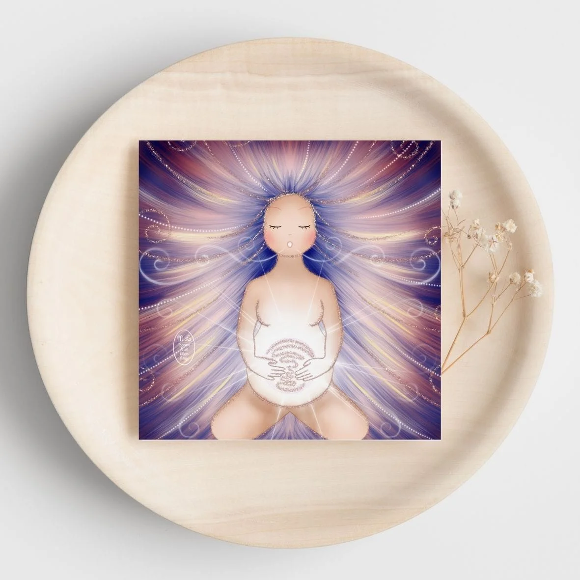 Ensemble de 6 cartes au format 10,5 x 10,5 cm, imprimées sur papier irisé, avec une illustration au recto et un mantra au verso Ces 6 cartes sont issues du jeu de 38 Mantras pour préparer la Naissance