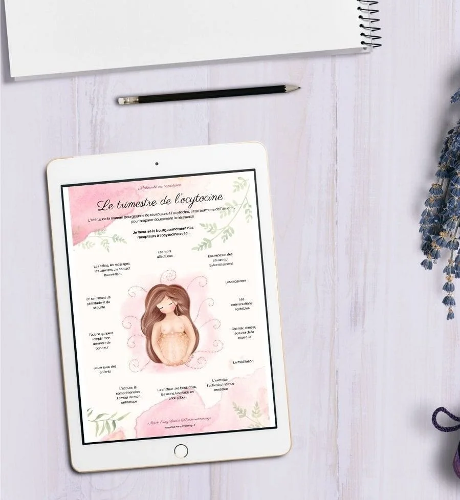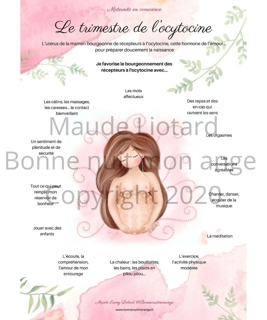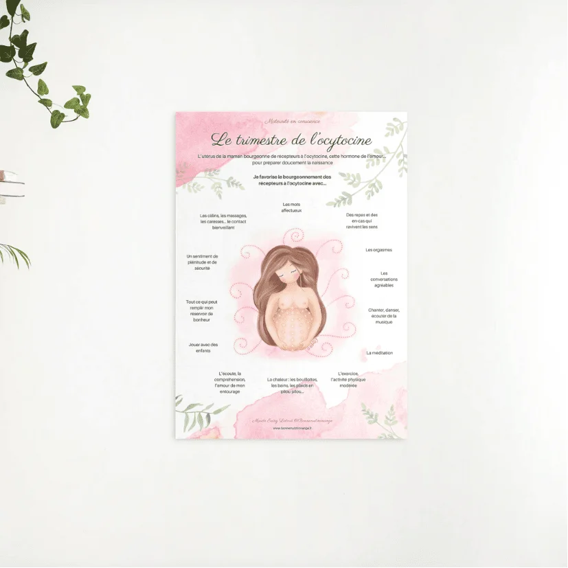Affiche de préparation à l’accouchement pour future maman, doula ou sage-femme : Le trimestre de l’ocytocine   L’utérus de la maman bourgeonne de récepteurs à l’ocytocine, cette hormone de l’amour, pour préparer doucement la naissance. « Je favorise le bourgeonnement des récepteurs à l’ocytocine avec… » reprend toutes les actions qui vont aider à bien vivre le troisième trimestre de la grossesse, et préparer naturellement l’accouchement. Idéale pour les futures mamans, les sage-femmes, les doulas, ou les accompagnantes périnatales.   Affiche imprimée avec amour en France sur papier d’art au format A4 OU A3. Vous pouvez aussi choisir un format numérique.  …