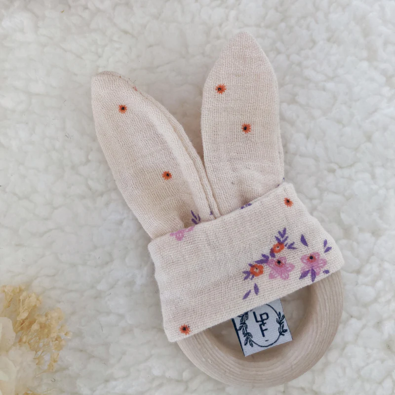 Soulagez les gencives de votre bébé avec notre anneau de dentition en bois non traité, recouvert de tissu doux en double gaze de coton certifié Oeko-Tex. Ce produit artisanal, à la fois mignon et fonctionnel, accompagnera votre tout-petit tout en stimulant sa motricité et en apaisant ses poussées dentaires.