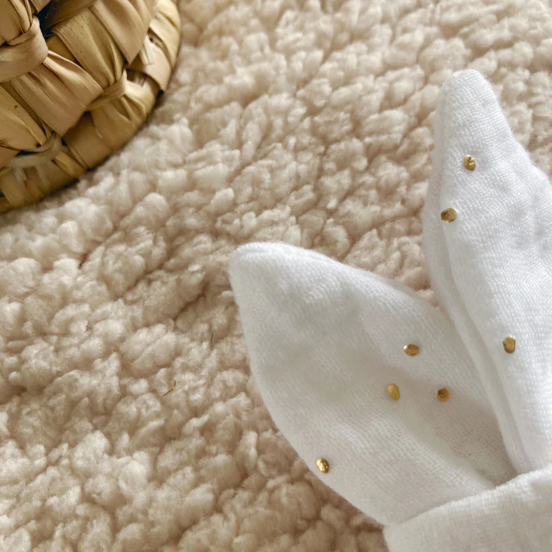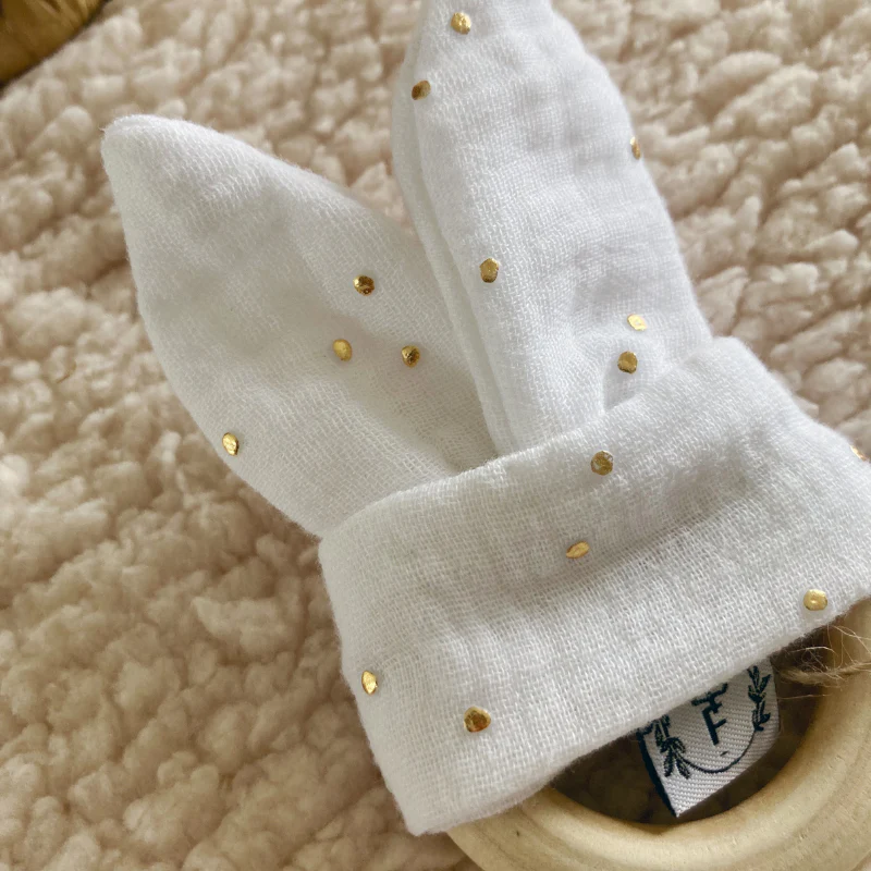 Anneau de Dentition – Gaze de coton Blanc à pois dorés