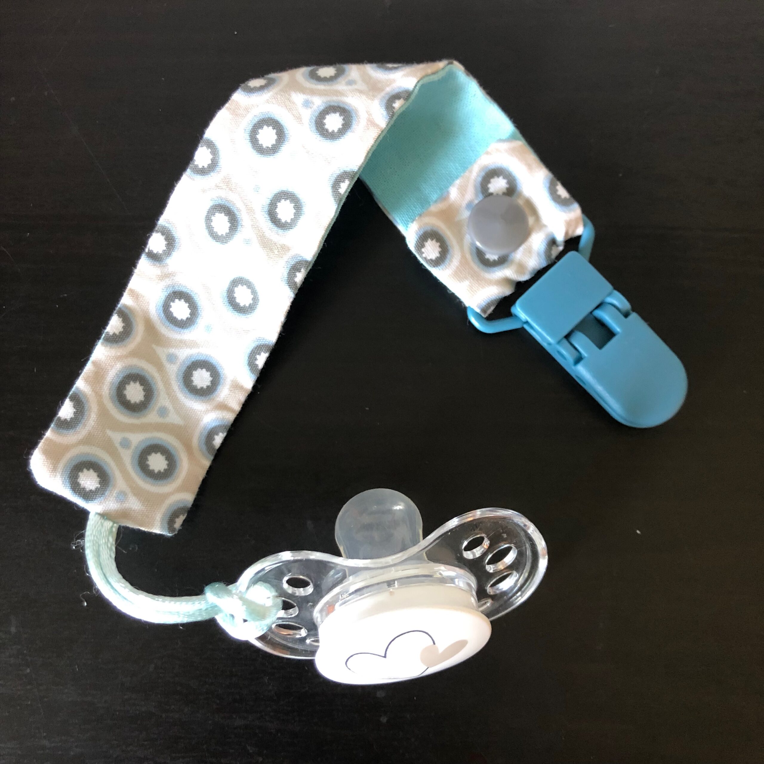 Attache tétine fait main. L’objet parfait pour pour ne plus perdre la sucette ou le doudou de bébé en l’attachant à son haut ou à sa poussette !
