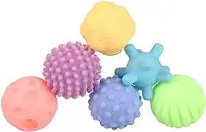 Lot de 6 balles douces et parfaitement adaptées aux bébés pour développer leur éveil sensoriel et leur sens du toucher.
