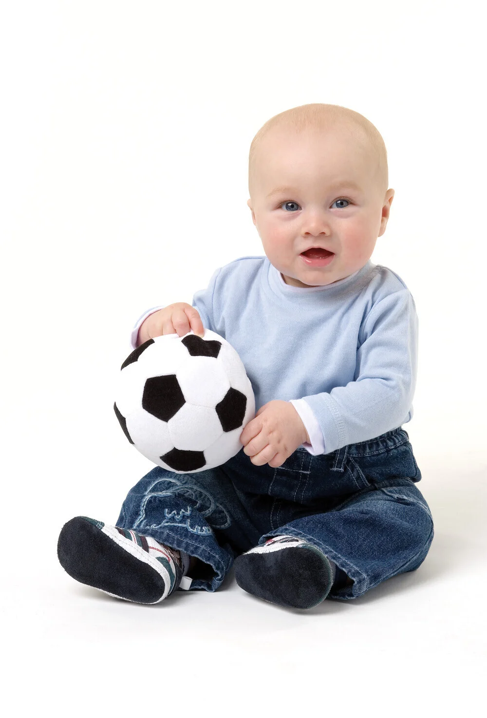 Ce ballon de football en tissu doux de 18 cm est parfait pour les tout-petits ! Léger, souple et sans danger, il encourage les bébés à ramper, marcher et lancer tout en développant leur motricité globale, coordination œil-main et équilibre.