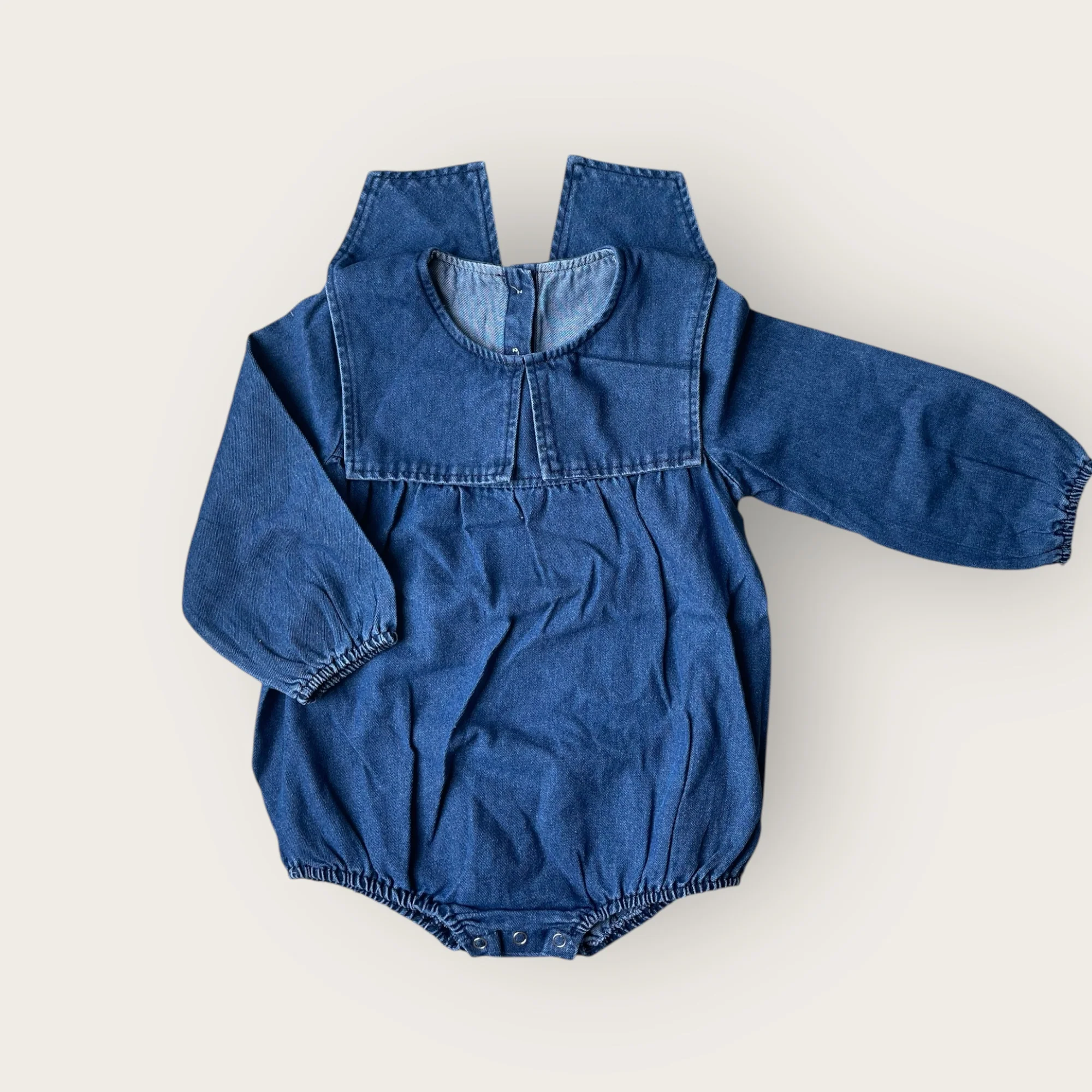 La barboteuse en Jean à col marin est la pièce classique et tellement mignonne du vestiaire de votre bébé. Très tendance et pratique, elle est dotée de pressions pour faciliter l’habillage de bébé.
