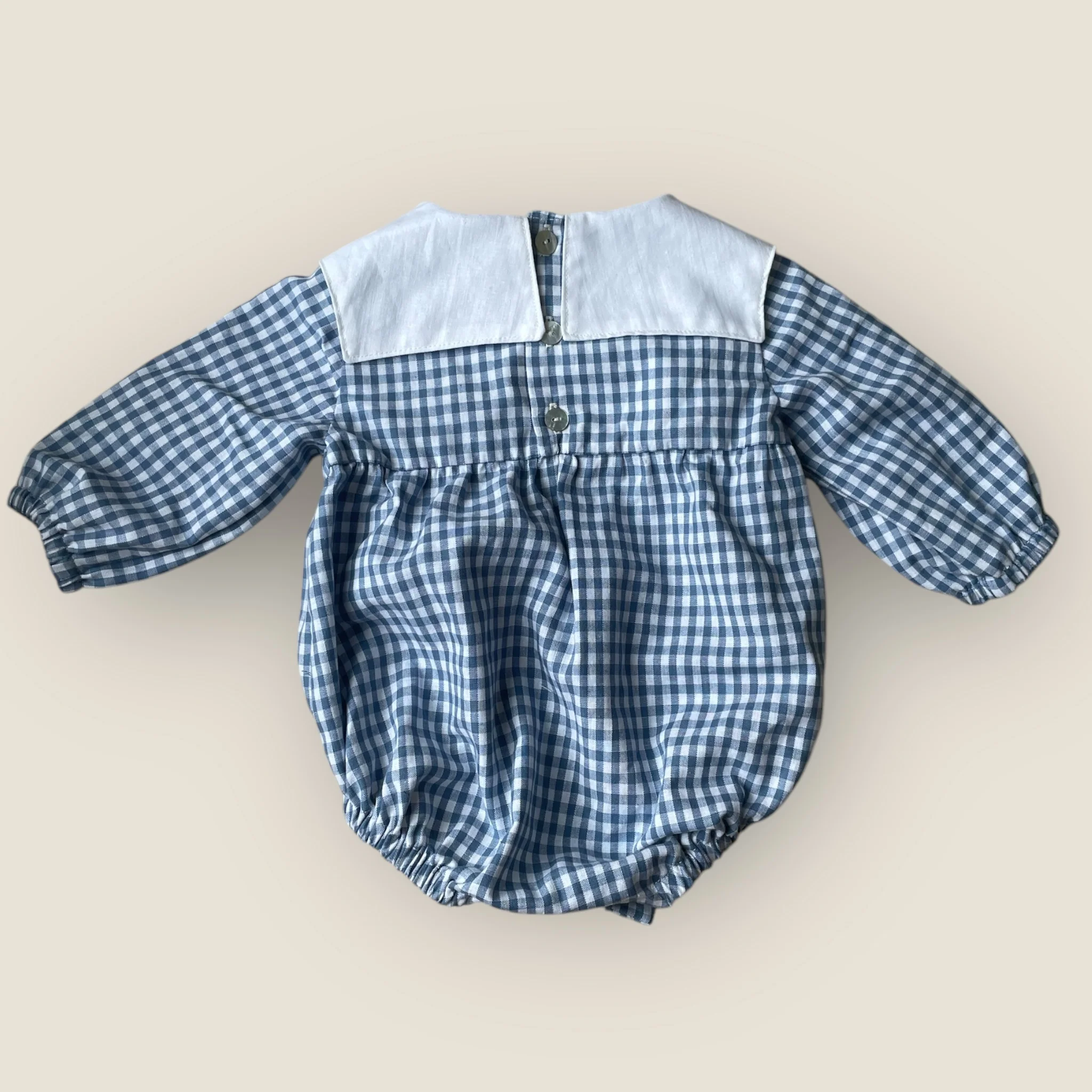 La barboteuse en Vichy à col marin est l’alliance parfaite entre praticité et mignonnerie. Très tendance et en coton de qualité, elle est dotée de pressions pour faciliter l’habillage de bébé.