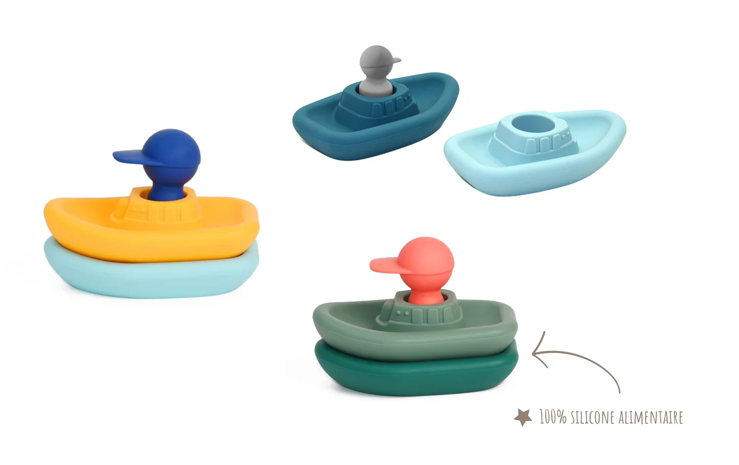 Ce set de jouet de bain composé de deux petits bateaux et le capitaine, est idéal pour la COORDINATION. Peut flotter sur l’eau et être utilisé n’importe où.
