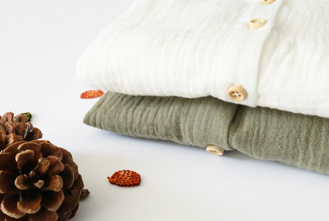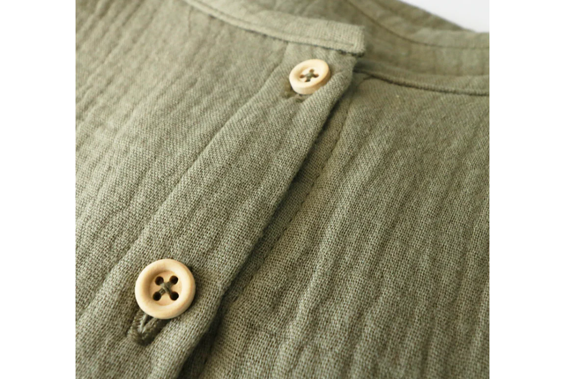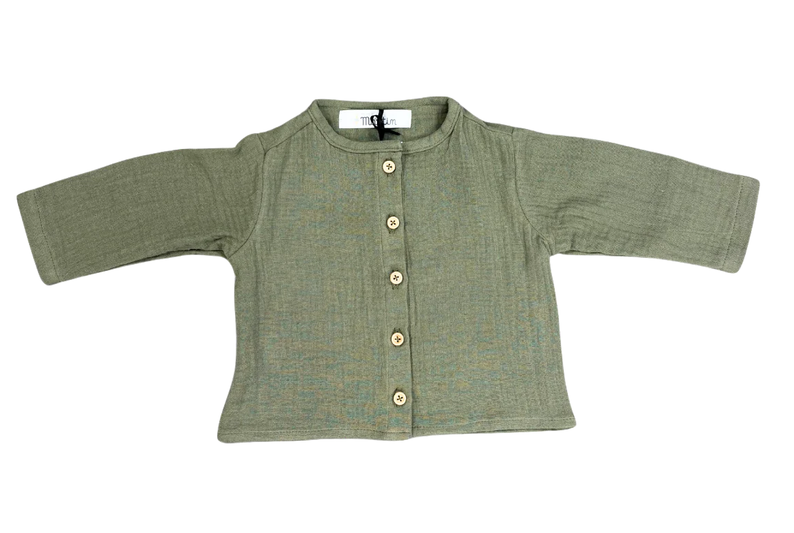 Cette délicate blouse est fabriquée à partir de double gaze de coton, dans une teinte vert olive, assurant un confort optimal et ajoutant une touche charmante à la garde-robe de votre bébé.