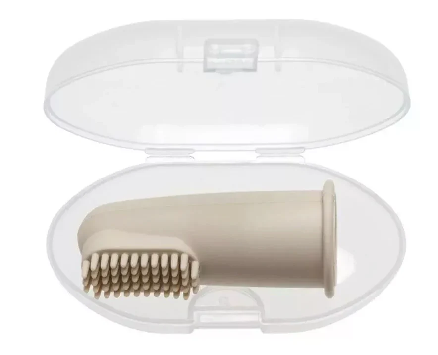 Une brosse à dents « normale » est bien sûr encore trop grosse et trop dure, mais vous pouvez commencer avec une brosse à dents à doigts. Ainsi, votre tout-petit s’habitue à se brosser les dents, mais cela stimule et masse également les gencives, qui peuvent parfois être plus sensibles lors de la poussée dentaire.