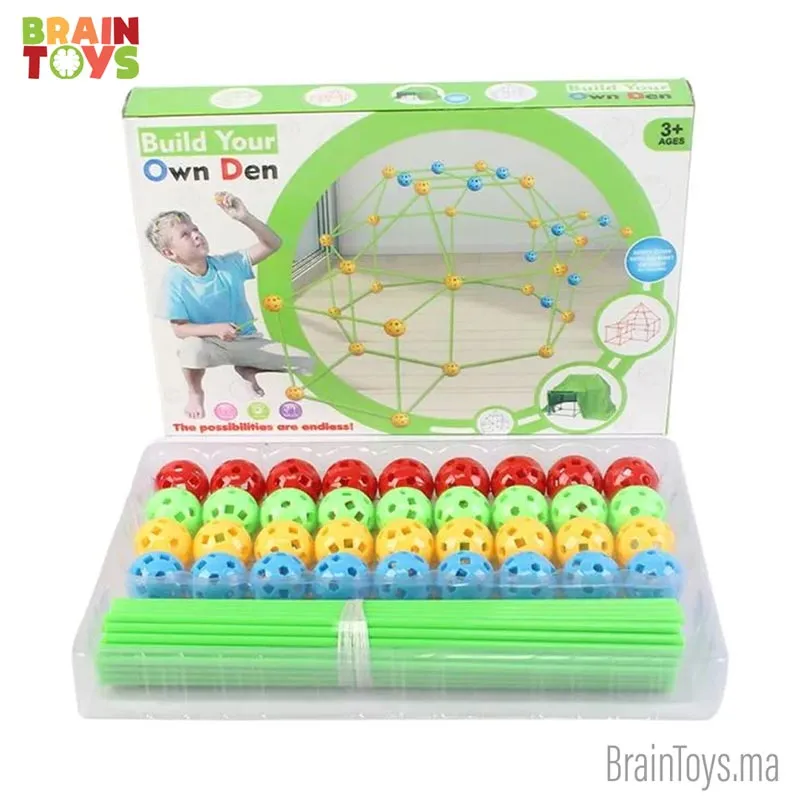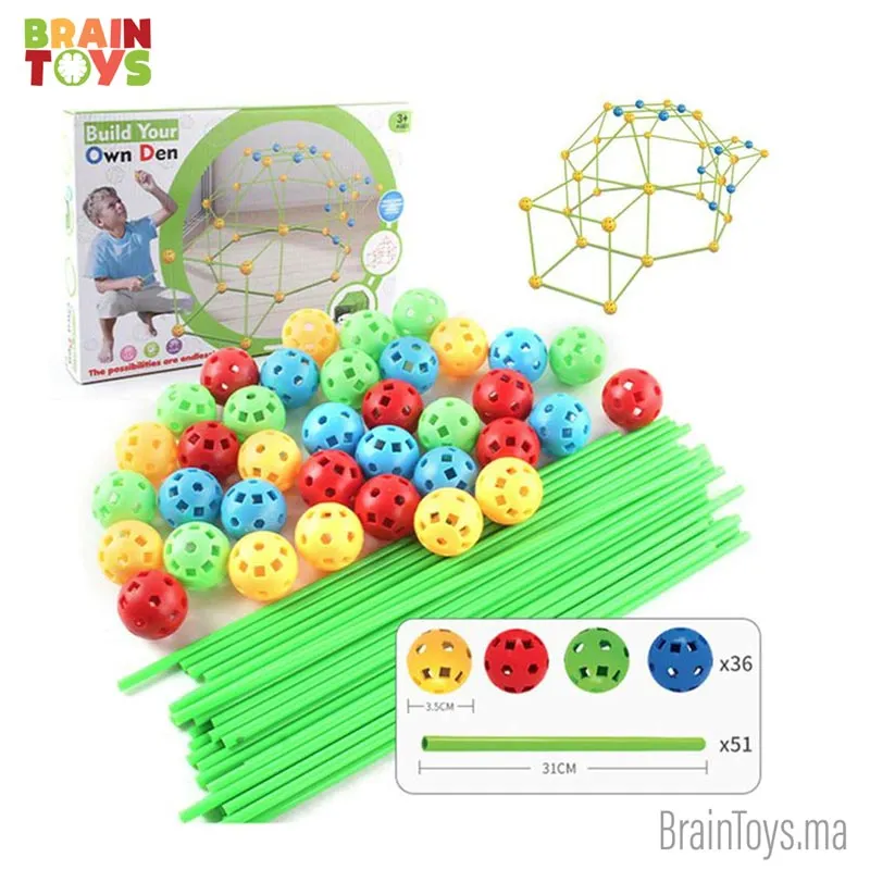 Consists of 36 connector balls and 51 interconnecting poles , les connecteurs permettent un assemblage rapide et facile de presque n’importe quelle structure un enfant peut imaginer.