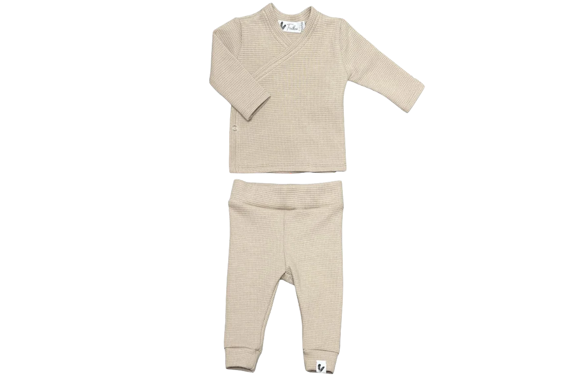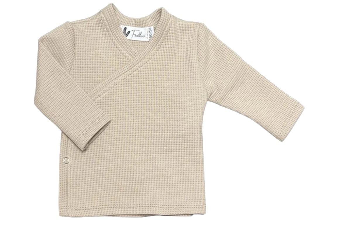 Chemise cache-coeur + pantalon gaufré beige foncé