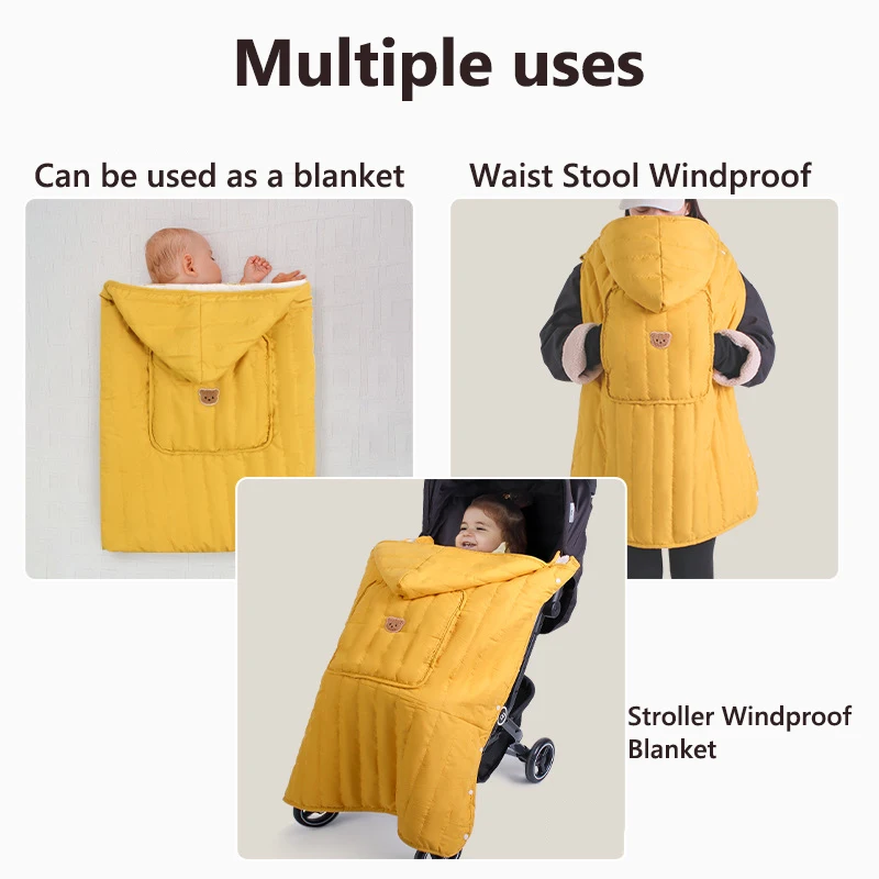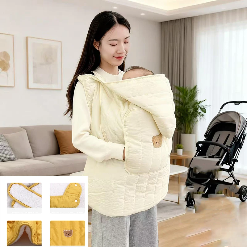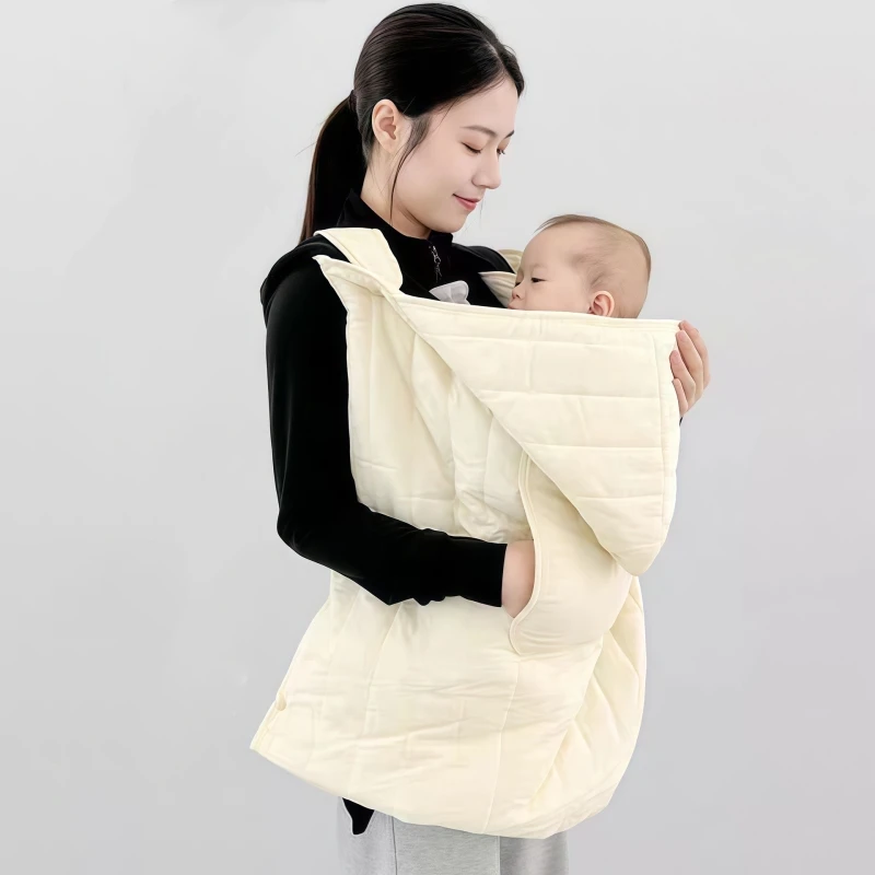 Son mélange coton et fibre de polyester offre une chaleur équilibrée, respirante, sans surchauffe. La capuche protège délicatement la tête encore fragile de votre être cher, tandis que les boutons pression assurent une fixation stable sur les bretelles du porte-bébé ou sur une poussette.