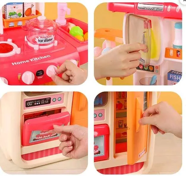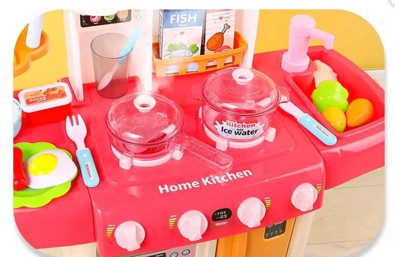 Ce set de cuisine contient tout les ustensils et ingrédients nécessaires qu’il faut pour cuisiner les plats les plus délicieux. La cuisine du petit chef vient avec un robinet qui fait couler de l’eau et des effets sonores très réalistes pour grill et la marmite sur la plaque de cuisson.