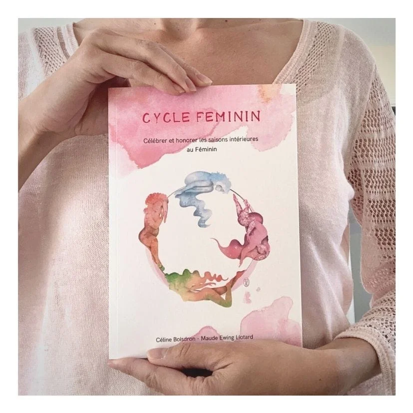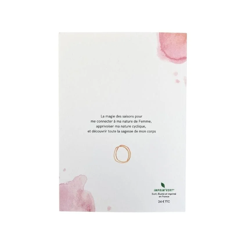 La magie des saisons pour me connecter à ma nature de Femme, Apprivoiser ma nature cyclique, Découvrir la sagesse de mon corps Et cheminer au rythme de mes propres saisons intérieures. Je suis très, très heureuse de vous présenter mon dernier livret, création artistique totalement indépendante et française co-écrite avec ma consoeur Céline Boisdron. Il est imprimé sur du beau papier épais, de façon écologique en France (labels FSC et Imprim’vert). 105 pages de poésie et de douceur, avec de l’espace pour y noter vos propres ressentis : Les 4 phases du cycle menstruel Méditation de reconnexion à mon utérus…