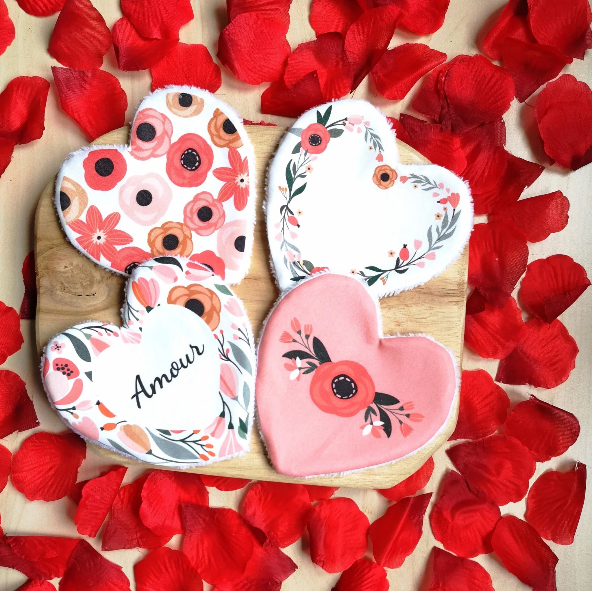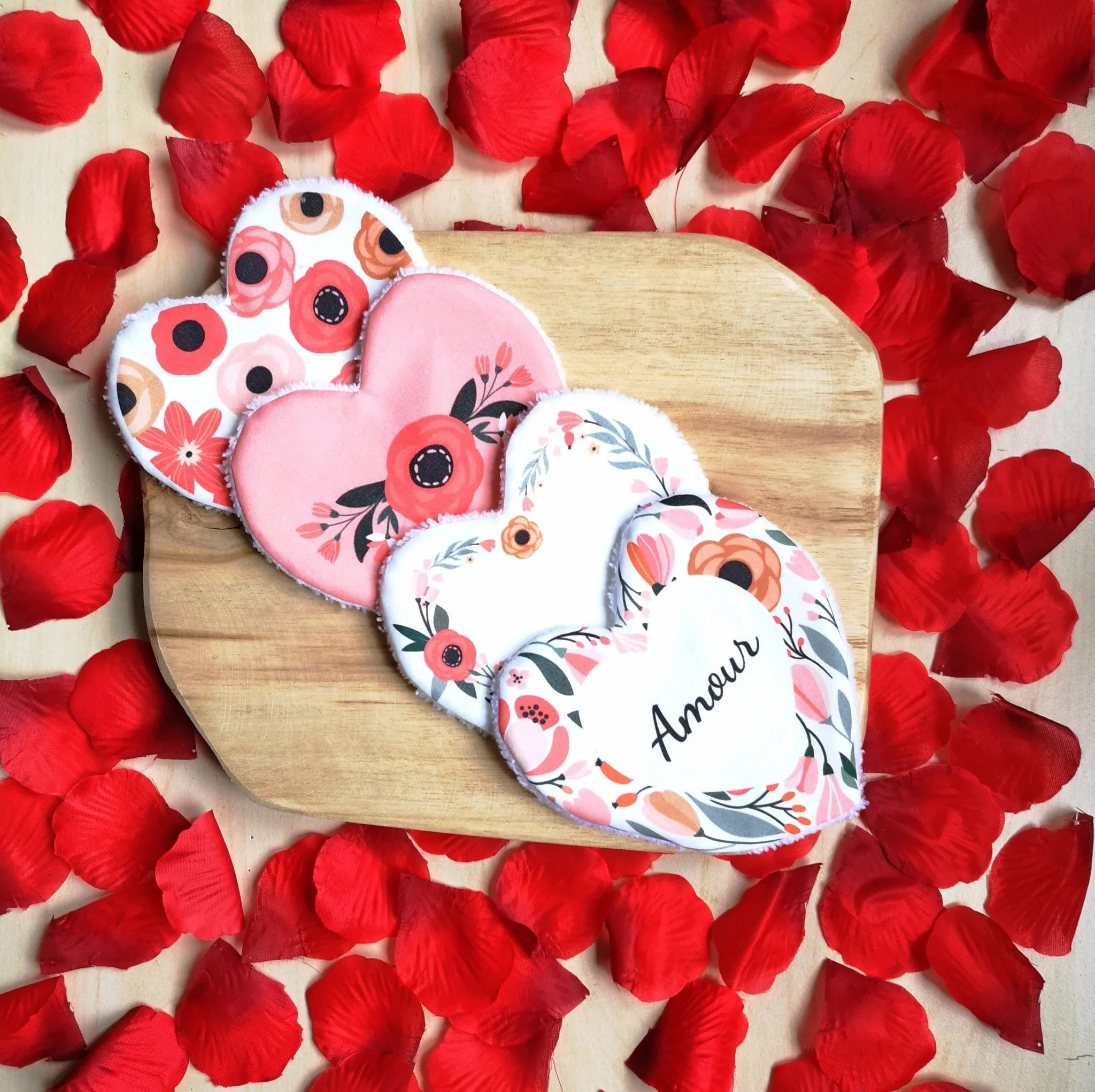 Ensemble de 4 Lingettes lavables Saint Valentin / Cadeau Saint Valentin « Amour »