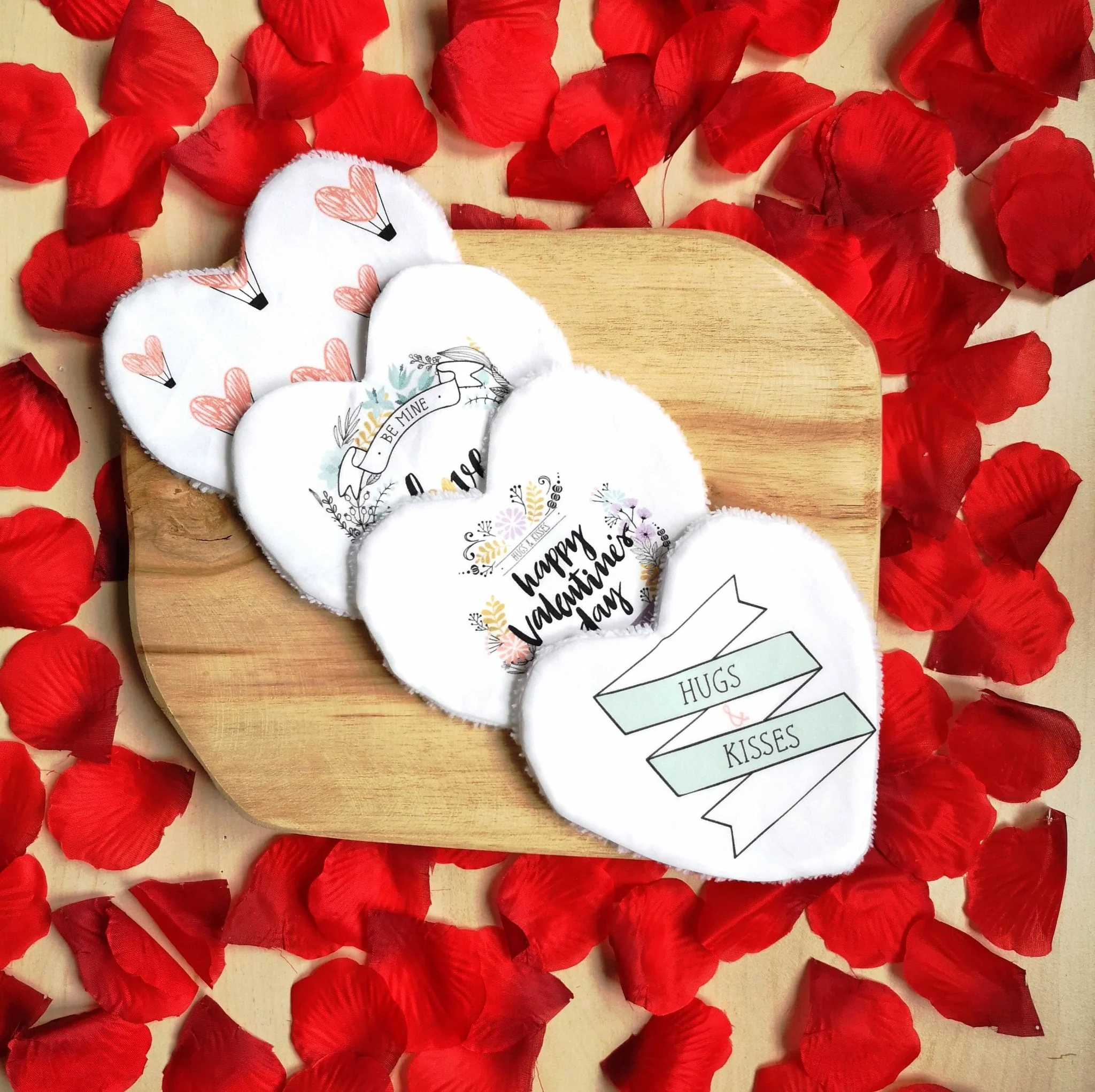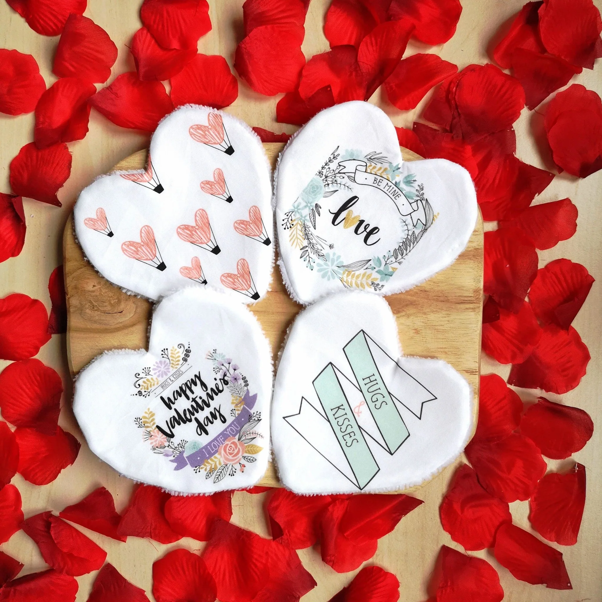 Ensemble de 4 Lingettes lavables Saint Valentin / Cadeau Saint Valentin « Amour »