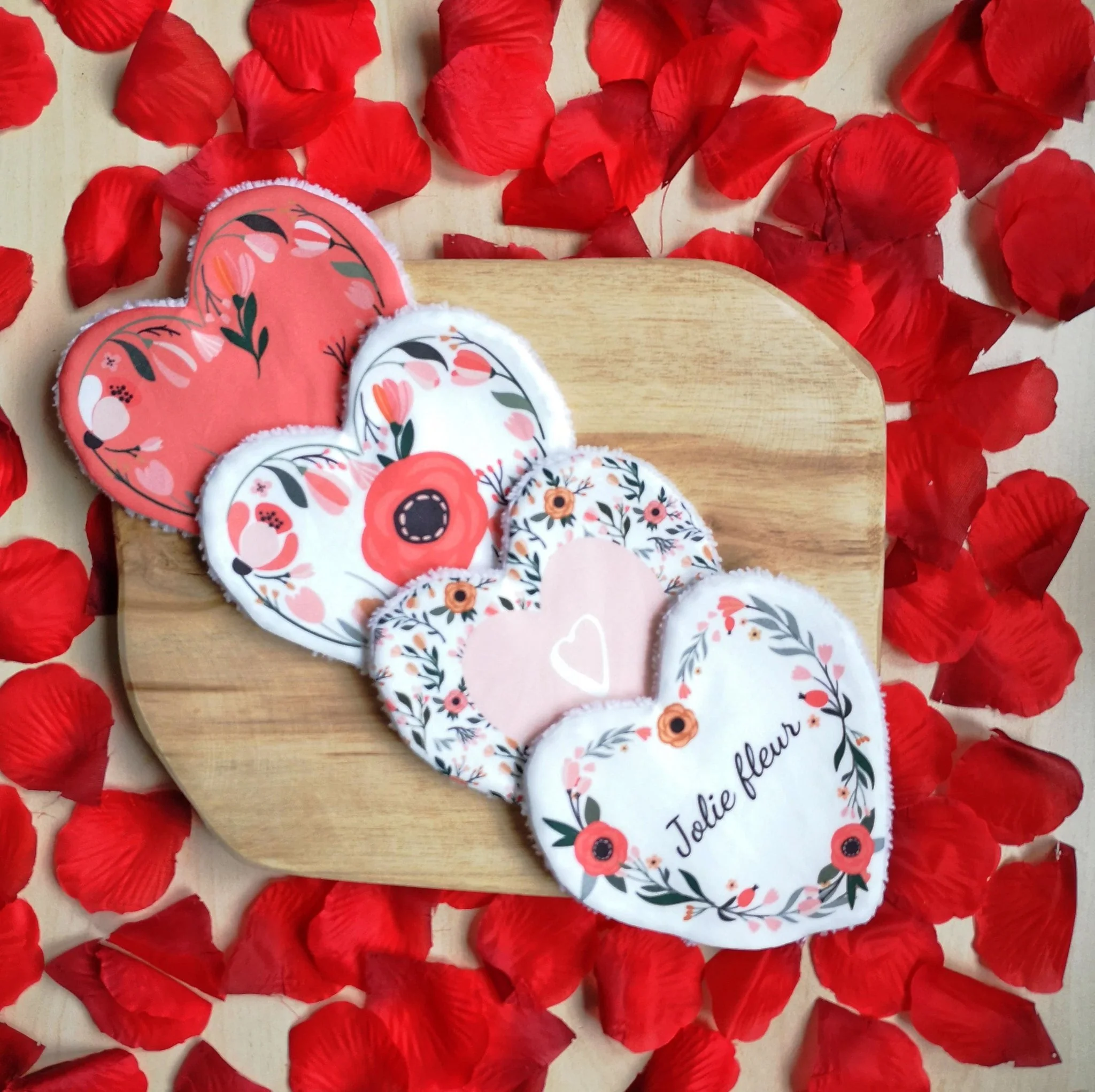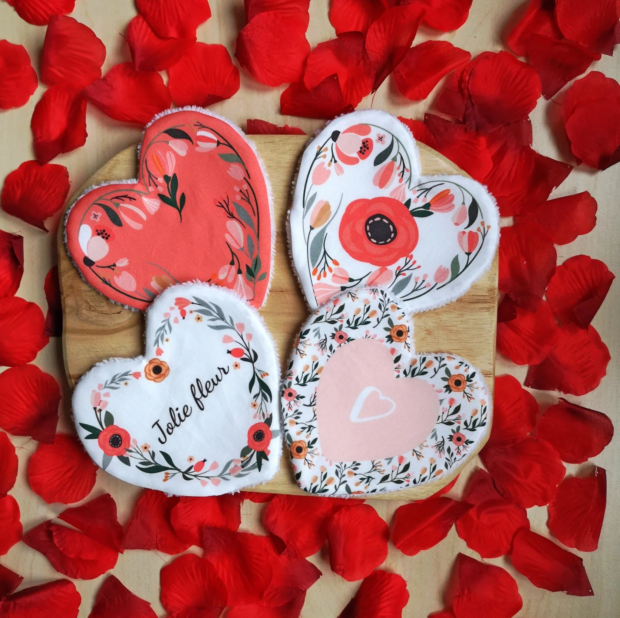 Ensemble de 4 Lingettes lavables Saint Valentin / Cadeau Saint Valentin « Jolie fleur »