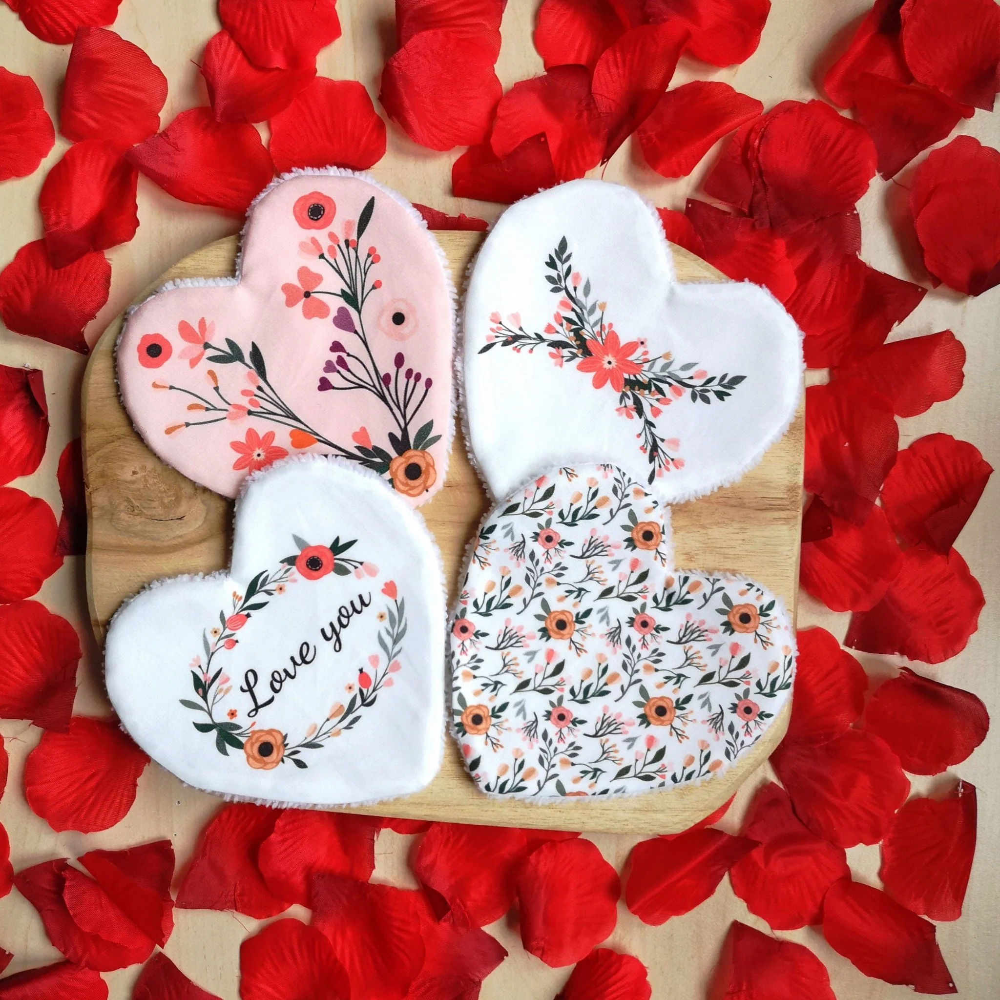 Ensemble de 4 Lingettes lavables Saint Valentin / Cadeau Saint Valentin « Amour »