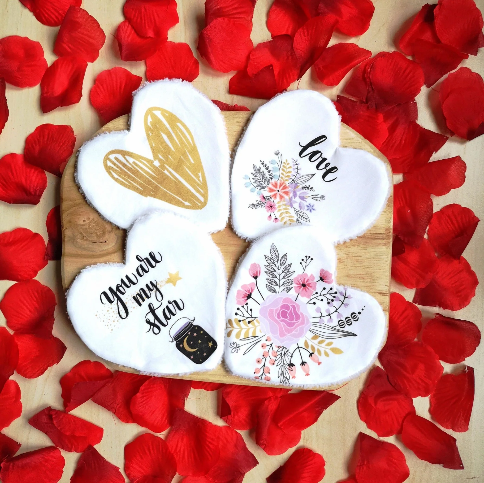 Ensemble de 4 Lingettes lavables Saint Valentin / Cadeau Saint Valentin « You are my star »