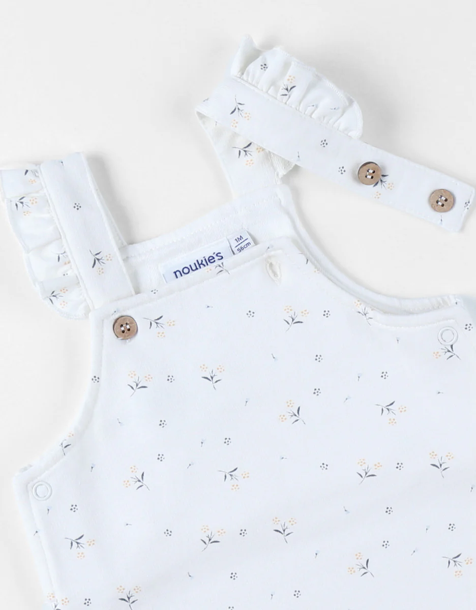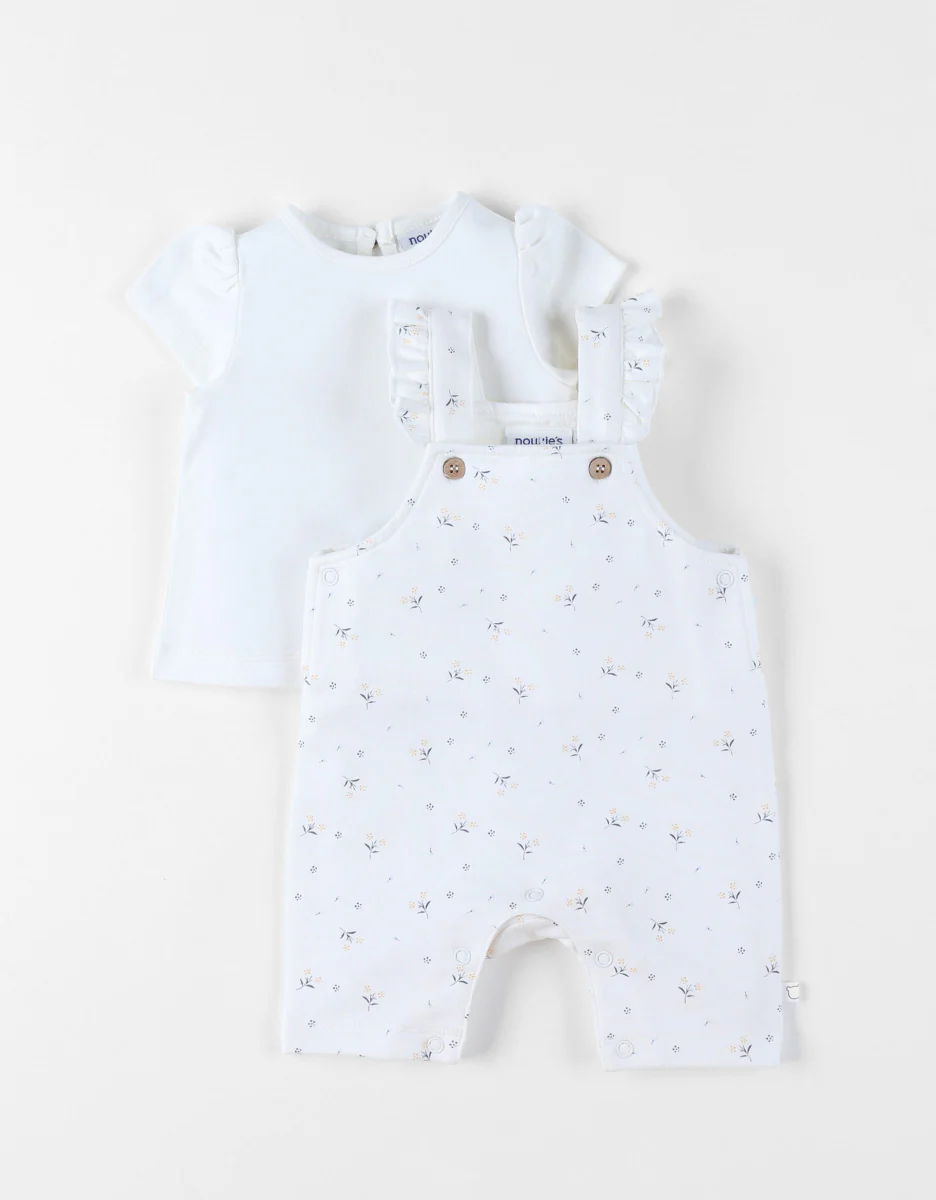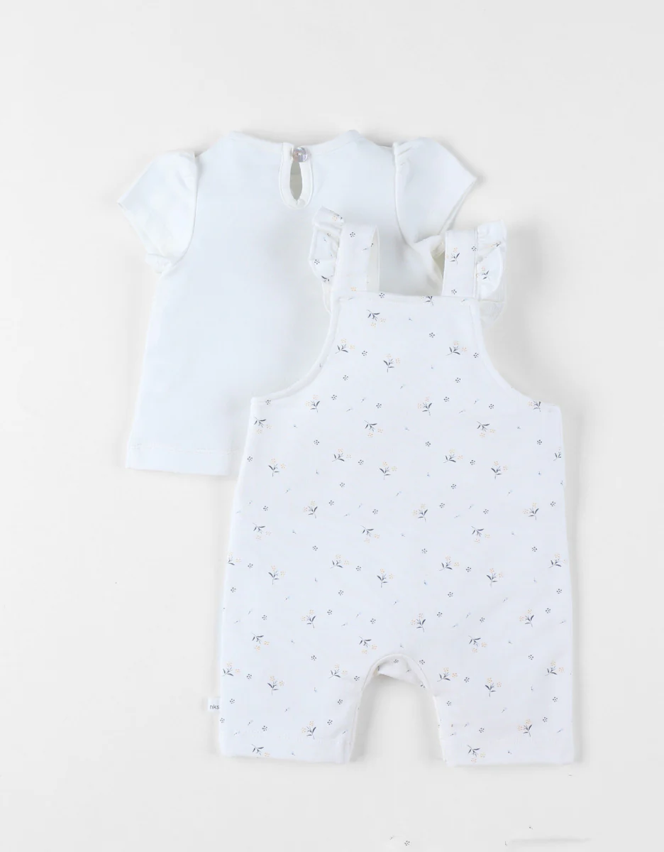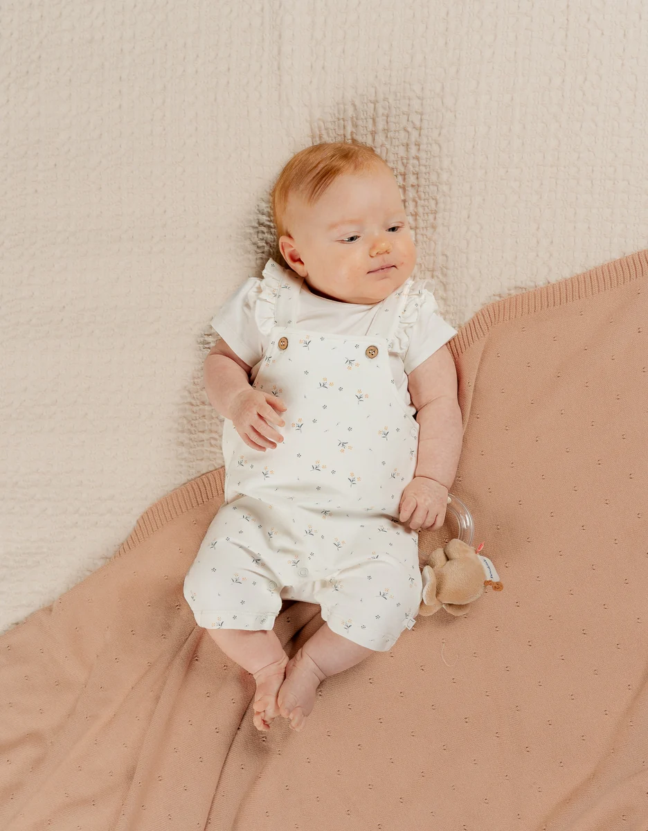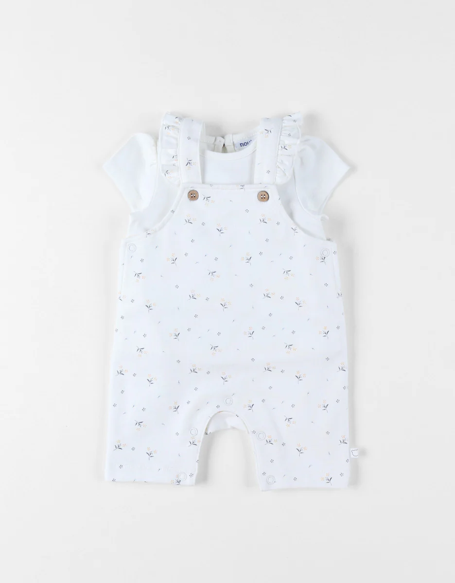 Cet ensemble très élégant avec ce joli imprimé floral offre confort et facilité d’utilisation. Un choix idéal si vous êtes à la recherche à la recherche d’un ensemble esthétique et pratique pour une petite fille. Avantages : Évolutif: Les bretelles ajustables permettent à l’ensemble de s’adapter à la croissance de votre bébé, prolongeant ainsi sa durée d’utilisation. Facilité de changement: Grâce à l’ouverture par pressions entre les jambes, vous n’aurez pas à retirer entièrement la salopette pour changer votre bébé. Facilité d’enfilage: L’ouverture de la salopette sur le côté, les boutons pressions, ainsi que l’ouverture en forme de goutte au dos du t-shirt facilitent l’habillage de votre bébé. Confort: Fabriqué en maille douce, souple et extensible, cet ensemble permet à votre bébé de se mouvoir librement. Il offre une grande liberté de mouvement, ce qui est essentiel pour les bébés actifs découvrant leur environnement.