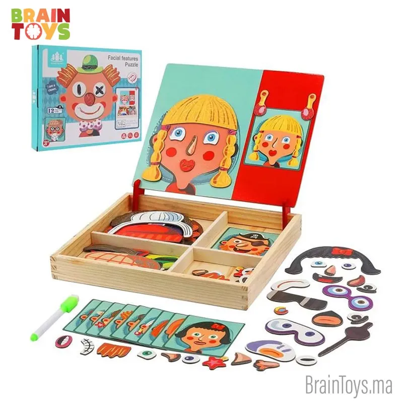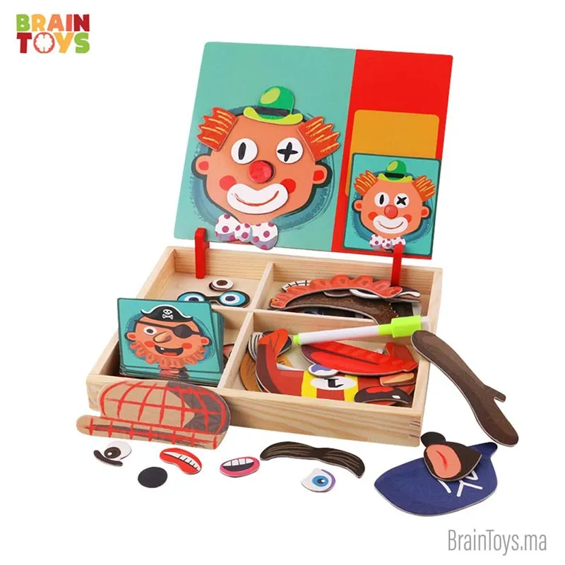 Puzzle magnétique en bois pour enfants, jeu de société Montessori, éducatif, pour habiller, avec Expression faciale changeante