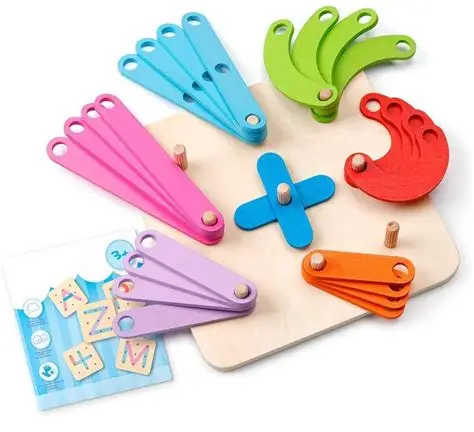 Apprenez à votre enfant à développer sa motricité fine grâce au géoboard Montessori chiffres et lettres. La boite contient un géoboard en bois carré avec des gros piquets en bois et des pièces en bois multicolores pour former des lettres, chiffres et autres modèle en se basant sur les cartes.