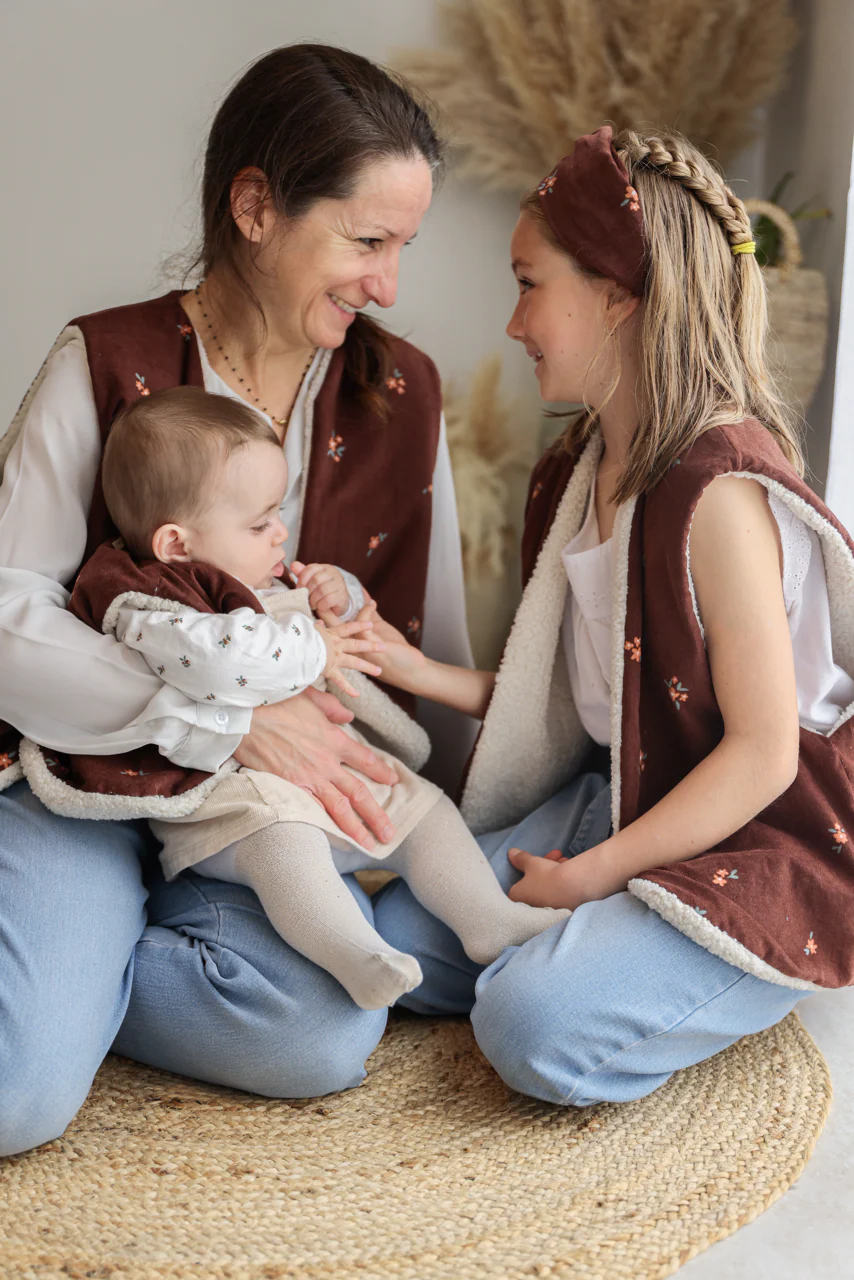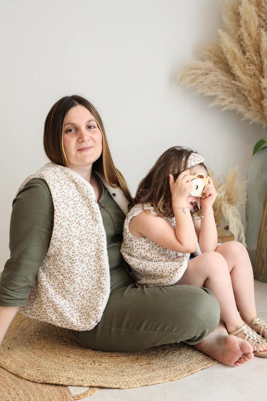 Confortable, chic et plein de caractère, notre gilet de berger réversible pour adulte est la pièce coup de cœur de mi-saison. Il réchauffe avec style tout en apportant une touche bohème et naturelle à votre tenue. Grâce à sa confection double-face, il s’adapte à vos envies : un côté doux et uni, l’autre fleuri ou imprimé, à porter selon l’humeur du jour.