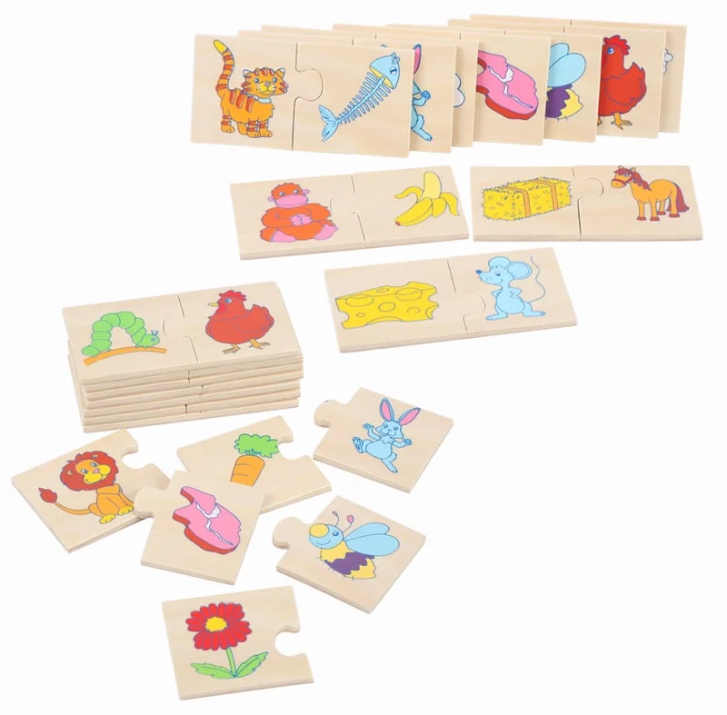 Jeu d’Association Éducatif – Puzzle en Bois animaux/nourriture 24 pièces