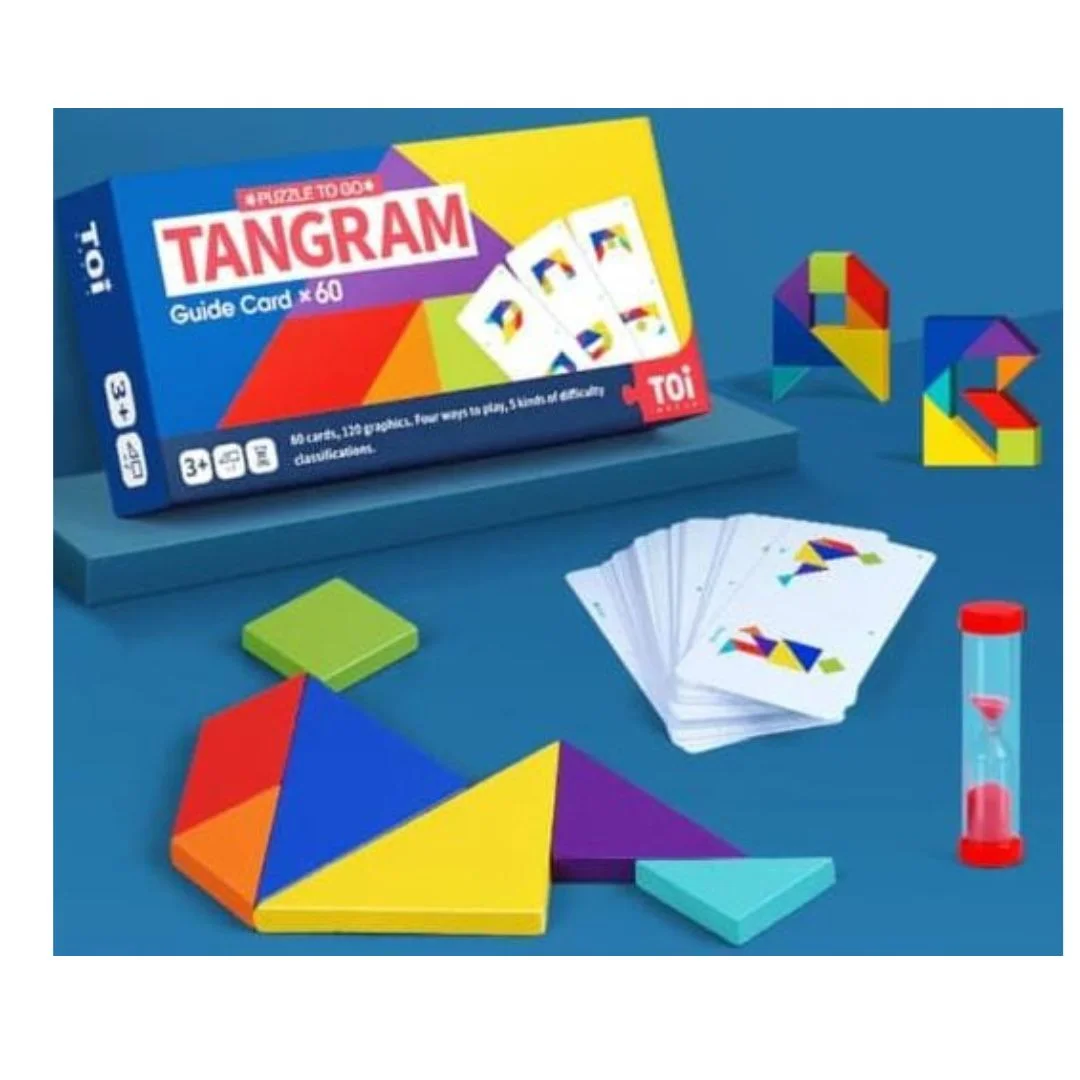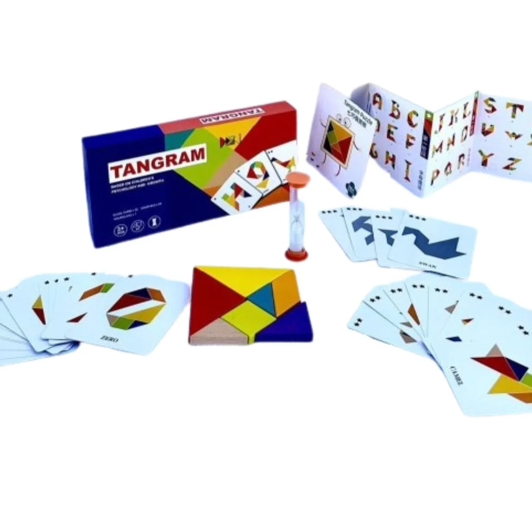Jeu de Tangram en Bois – 60 Cartes – Casse-tête Éducatif