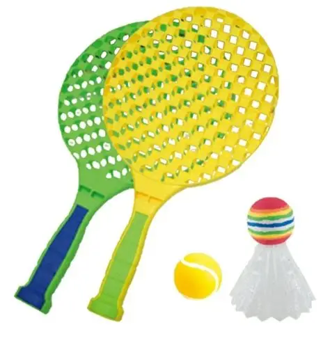 Encouragez le dĆ©veloppement des compĆ©tences motrices et la coordination Åil-main de vos enfants avec cet ensemble de raquettes de tennis. FabriquĆ© Ć partir de plastique Ć©cologique, il est Ć la fois durable et lĆ©ger. Facile Ć transporter et Ć installer n’importe où, cet ensemble est Ć©galement simple Ć ranger.
