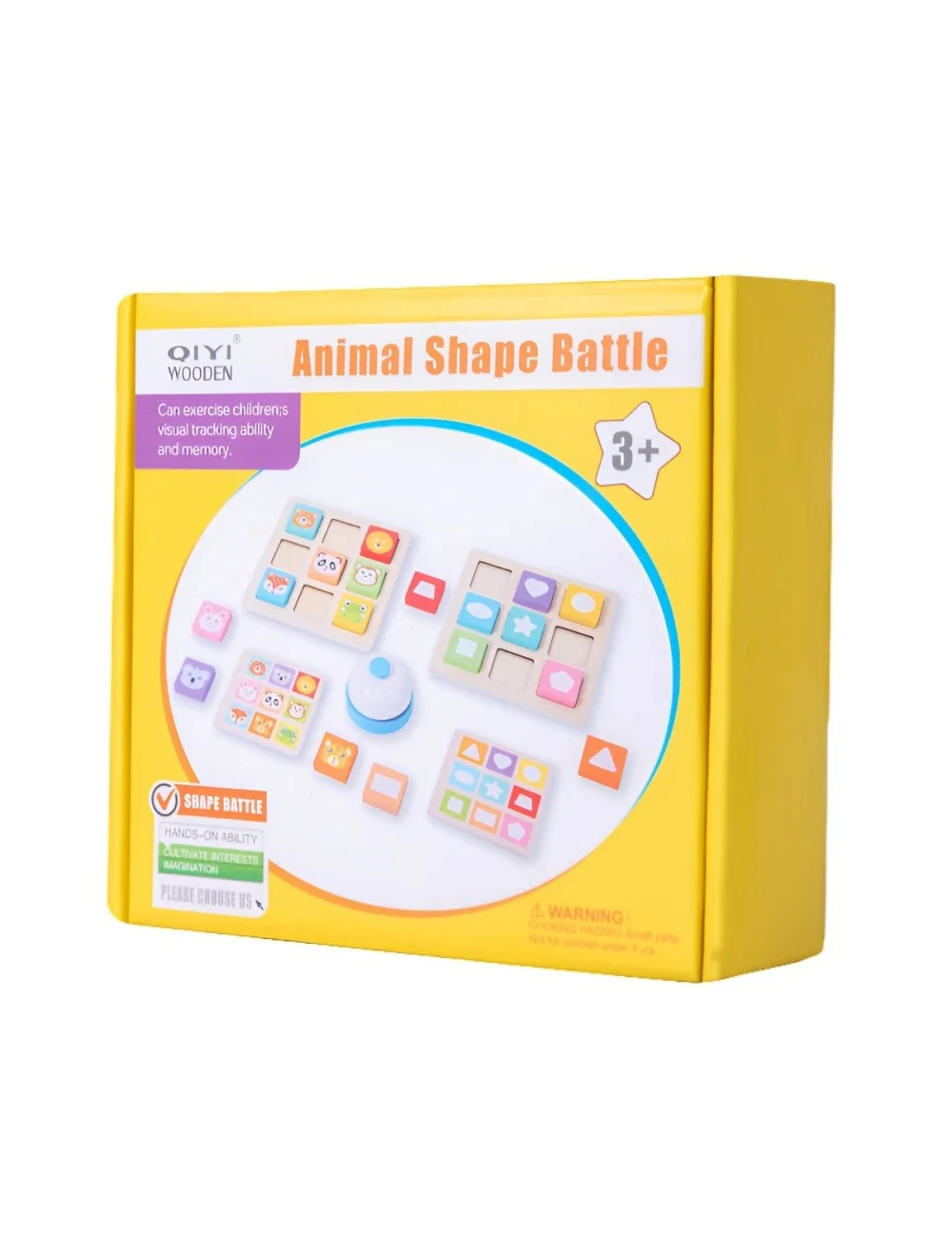 Le jeu éducatif “Bataille des formes animales” est un jeu en bois amusant et interactif idéal pour les enfants à partir de 3 ans. Il aide à développer la mémoire visuelle, la logique, la coordination œil-main et la rapidité de réaction, tout en s’amusant.