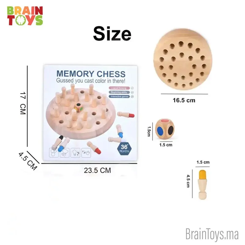 Jeu memory chess est conçu pour améliorer différentes compétences chez les enfants. Jouer avec ce jouet peut aider à améliorer la coordination œil-main, la motricité fine, la concentration. Il peut également être bénéfique pour améliorer la mémoire, exercer la capacité d’observation. Étant donné que le jeu doit être joué avec d’autres joueurs, il peut être utile pour les capacités sociales des enfants. Lorsqu’il est joué avec des membres de la famille, il peut améliorer la connexion parent-enfant. L’utilisation de ce jeu dans divers groupes peut également aider les enfants à trouver des amis du même âge.