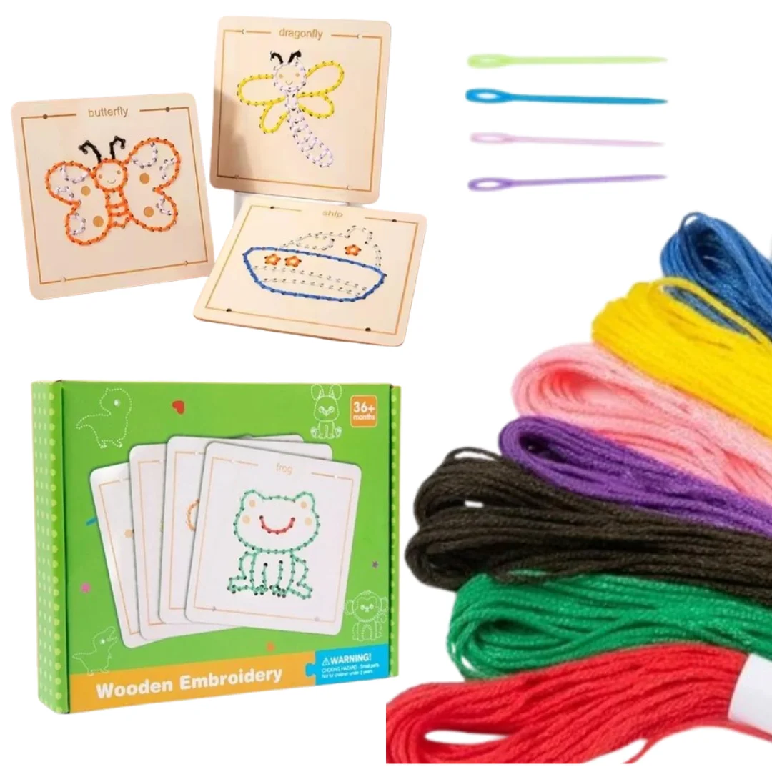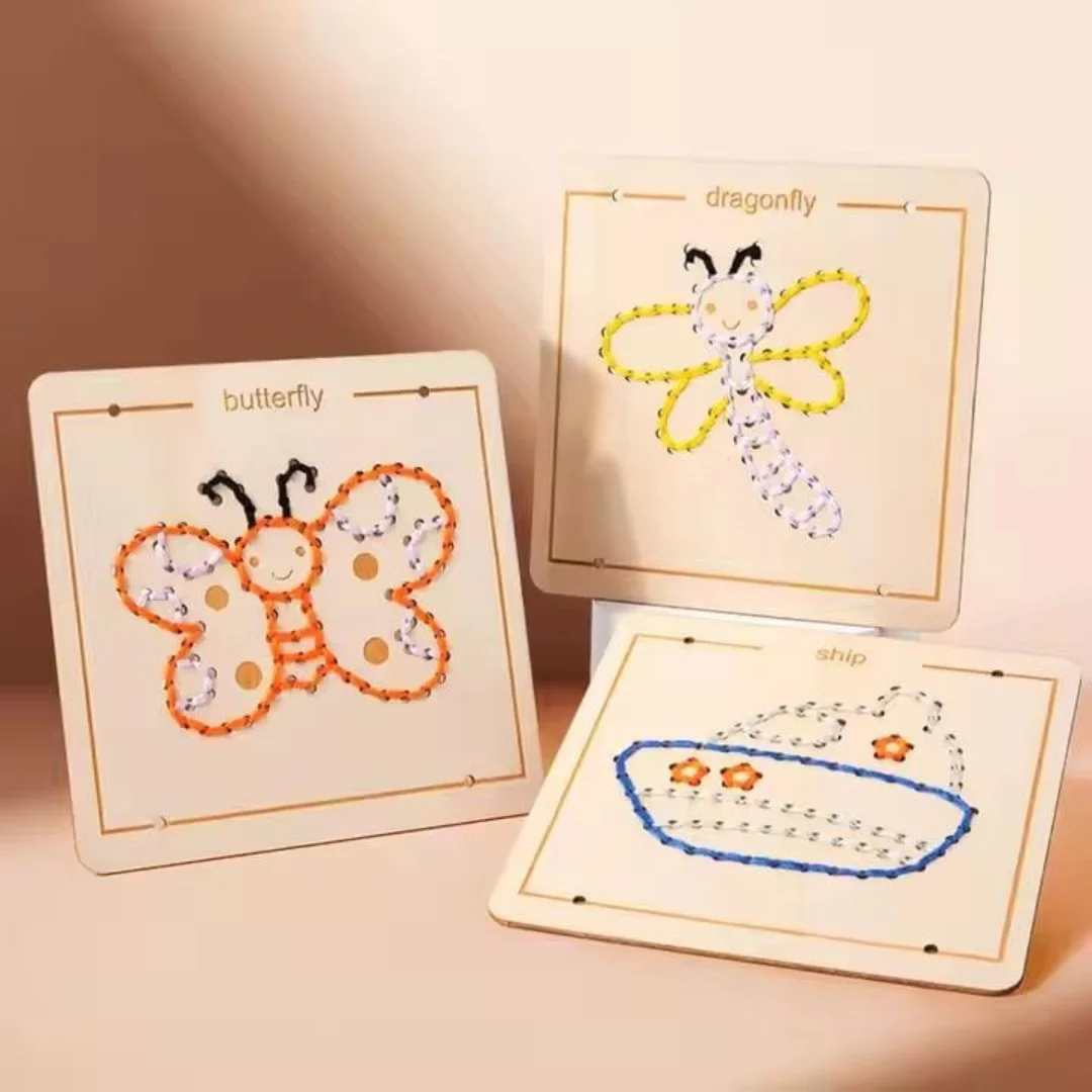 🧵 Jouet de Laçage en Bois – Puzzle à Broder Éducatif (Papillon, Coccinelle, Libellule, Grenouille)