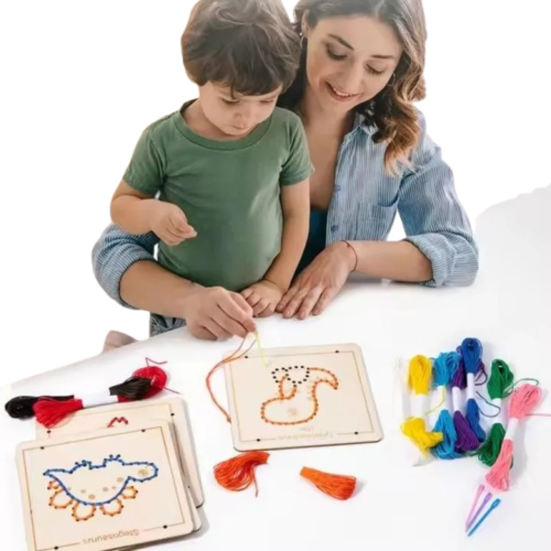 Sécurisé et durable : Fabriqué en bois lisse de haute qualité, sans arêtes vives, avec des cordes colorées faciles à manipuler et des aiguilles en plastique adaptées aux enfants.