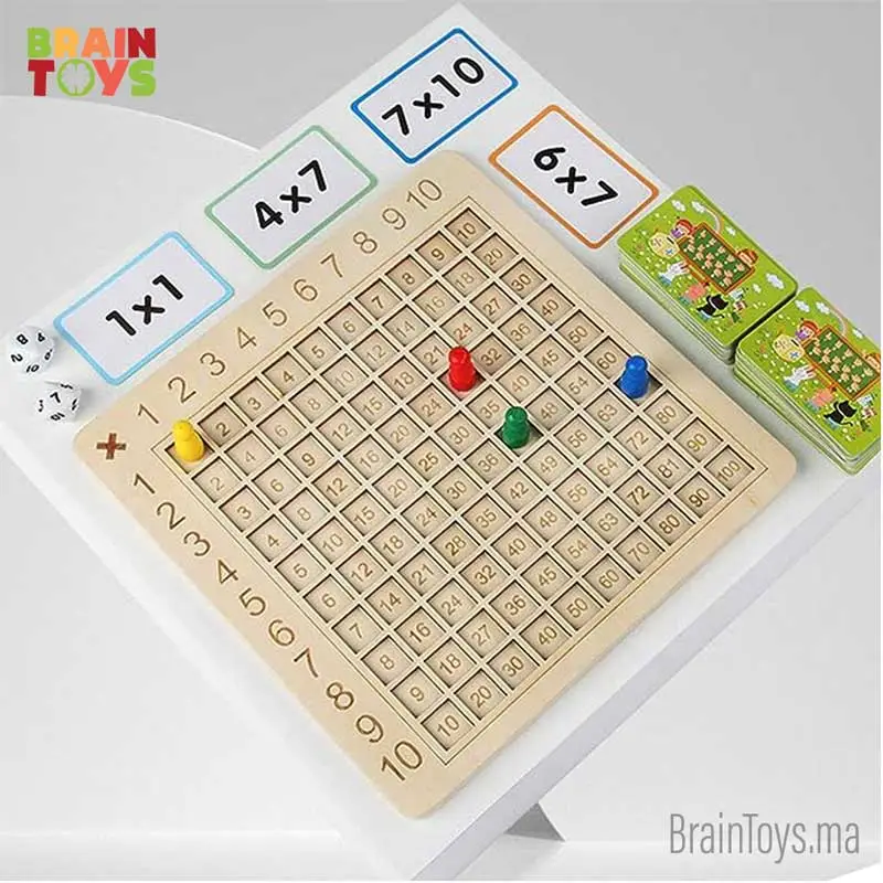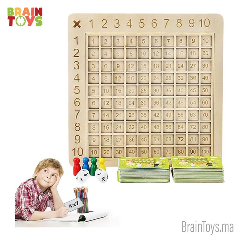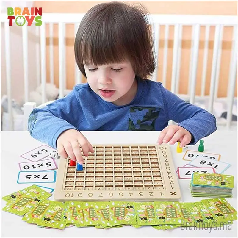 Jouet d’entraînement mathématique de multiplication L’ensemble de plateau de jeu de multiplication en bois est un jouet d’entraînement mathématique amusant