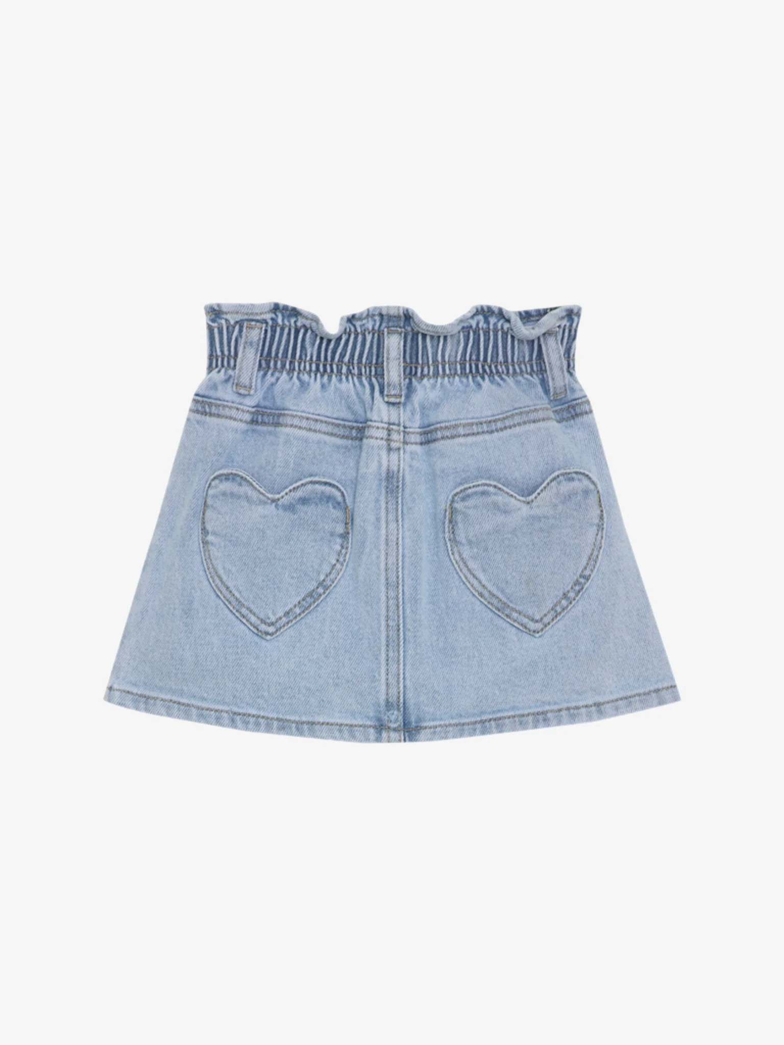 La jupe en jean en denim moyen allie un charme ludique avec une touche de fantaisie. Avec sa taille frangée et ses ravissants cœurs cousus sur les poches arrière, cette jupe est parfaite pour les aventures de chaque petit explorateur.