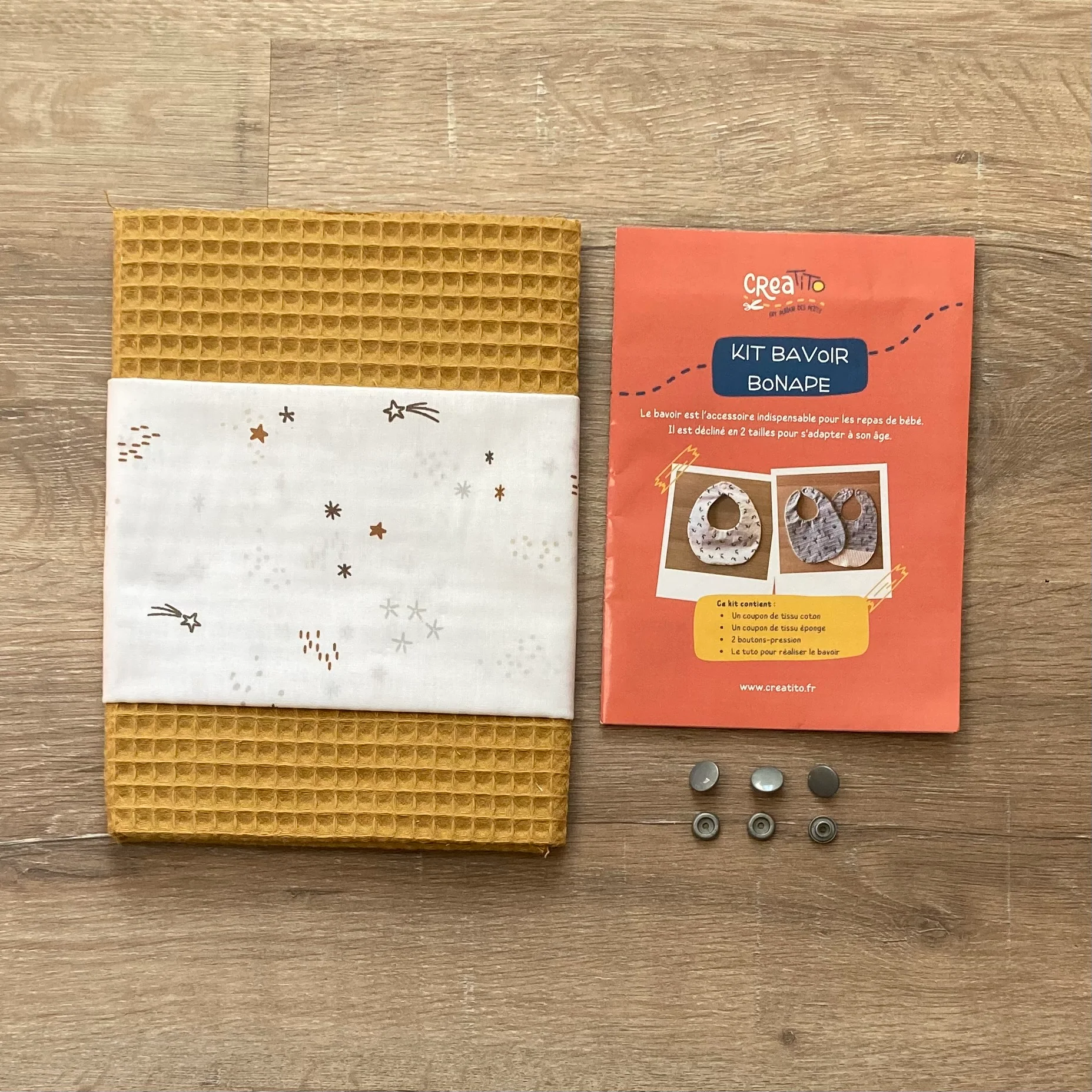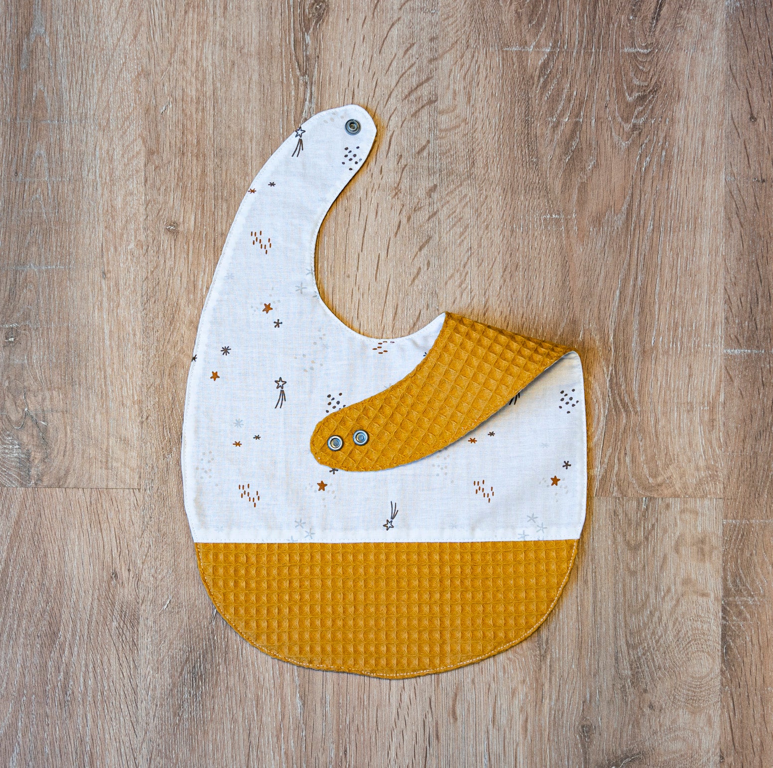 Grâce au kit, vous pouvez réaliser un seul bavoir mais vous aurez le choix entre les 2 tailles (les 2 patrons se trouvent dans le même kit).
