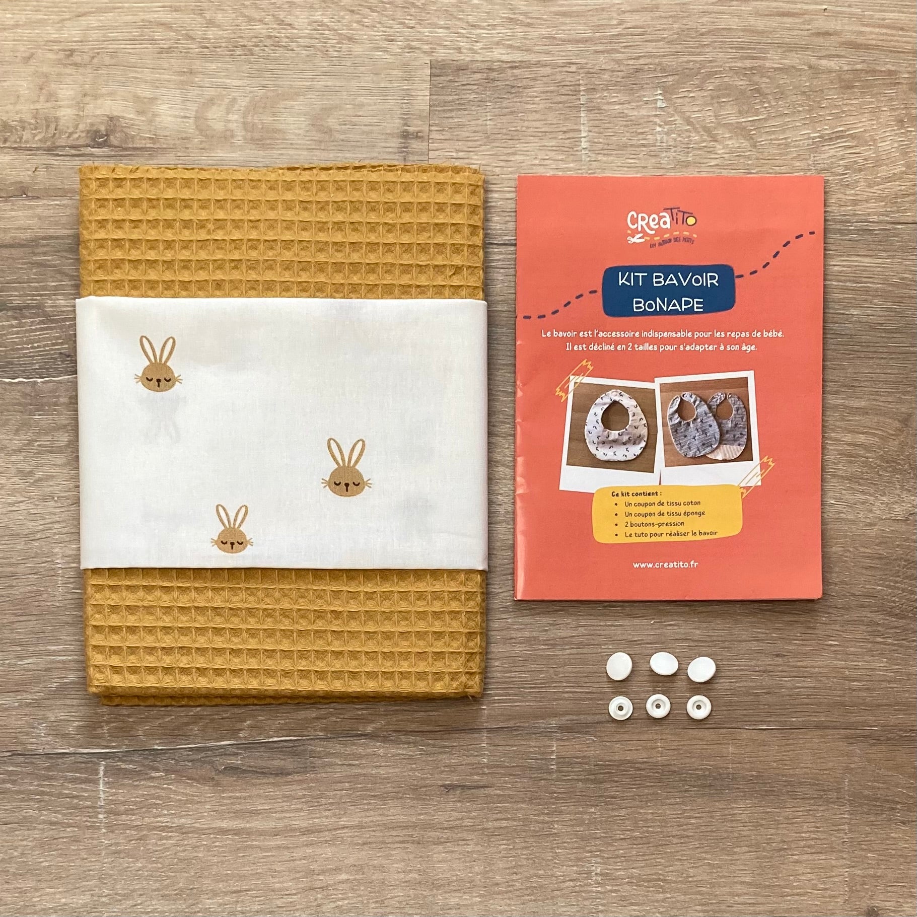Grâce au kit, vous pouvez réaliser un seul bavoir mais vous aurez le choix entre les 2 tailles (les 2 patrons se trouvent dans le même kit).