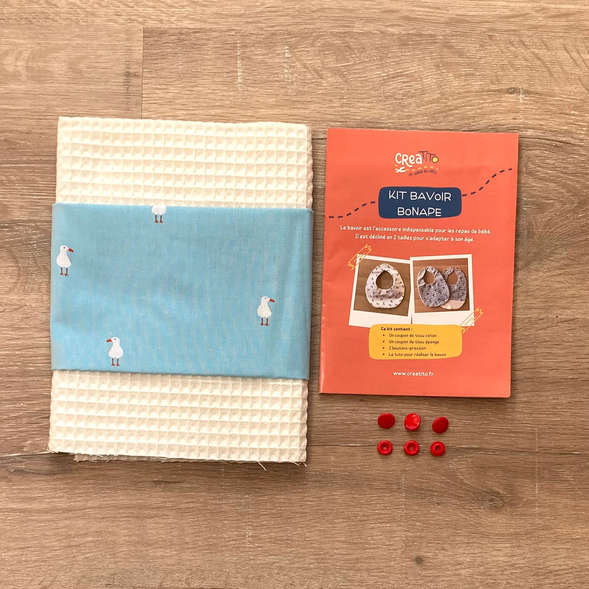 Grâce au kit, vous pouvez réaliser un seul bavoir mais vous aurez le choix entre les 2 tailles (les 2 patrons se trouvent dans le même kit).
