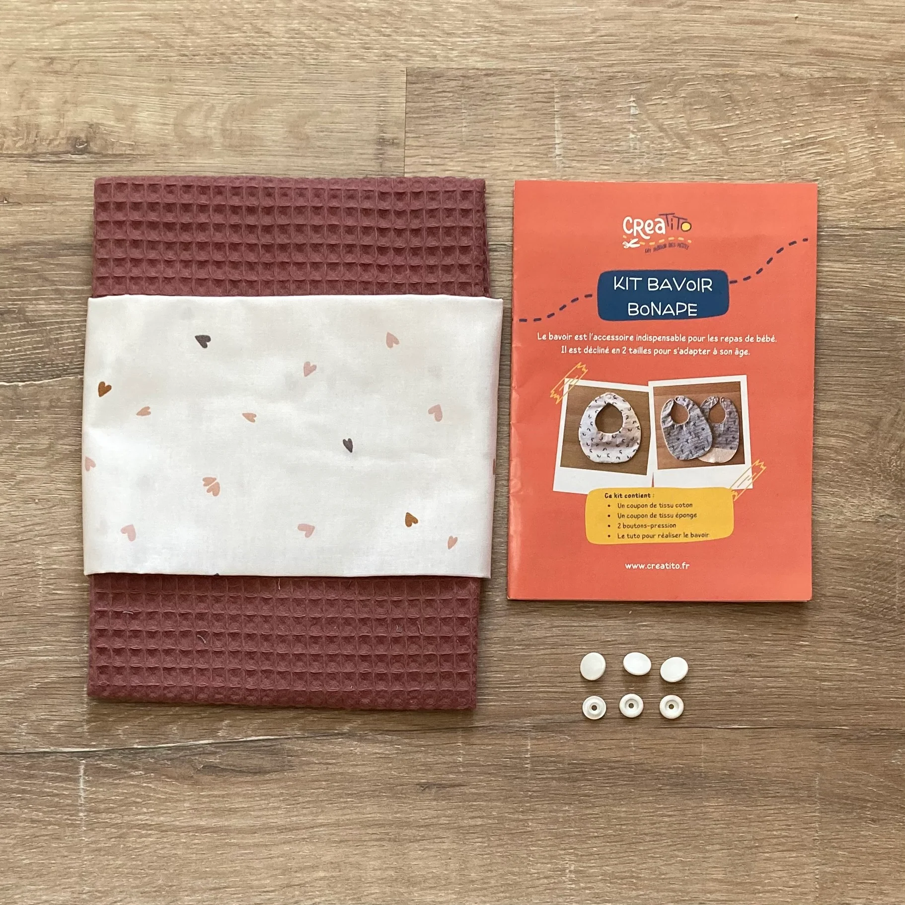 Grâce au kit, vous pouvez réaliser un seul bavoir mais vous aurez le choix entre les 2 tailles (les 2 patrons se trouvent dans le même kit).