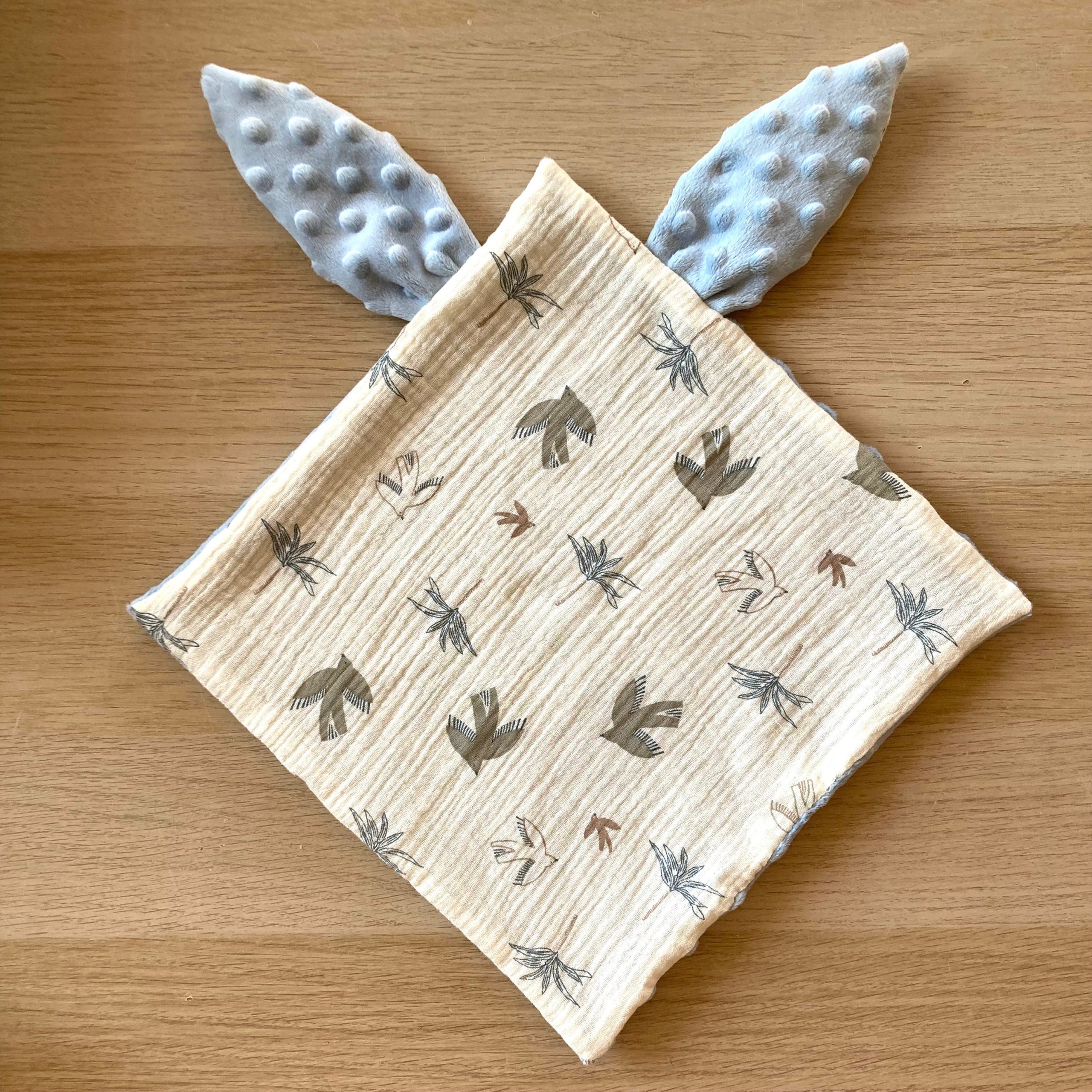 Dimensions doudou fini : environ 28 cm x 28 cm (hors oreilles)