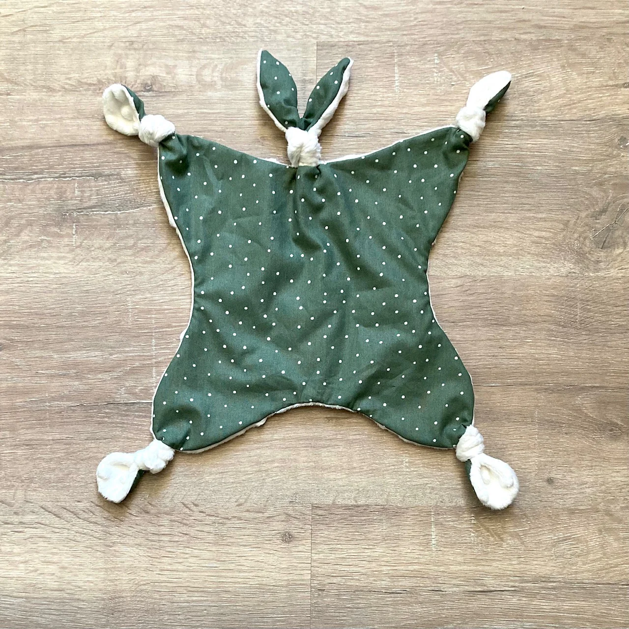 Dimensions du doudou fini : environ 30 cm X 30 cm (hors pattes et oreilles).