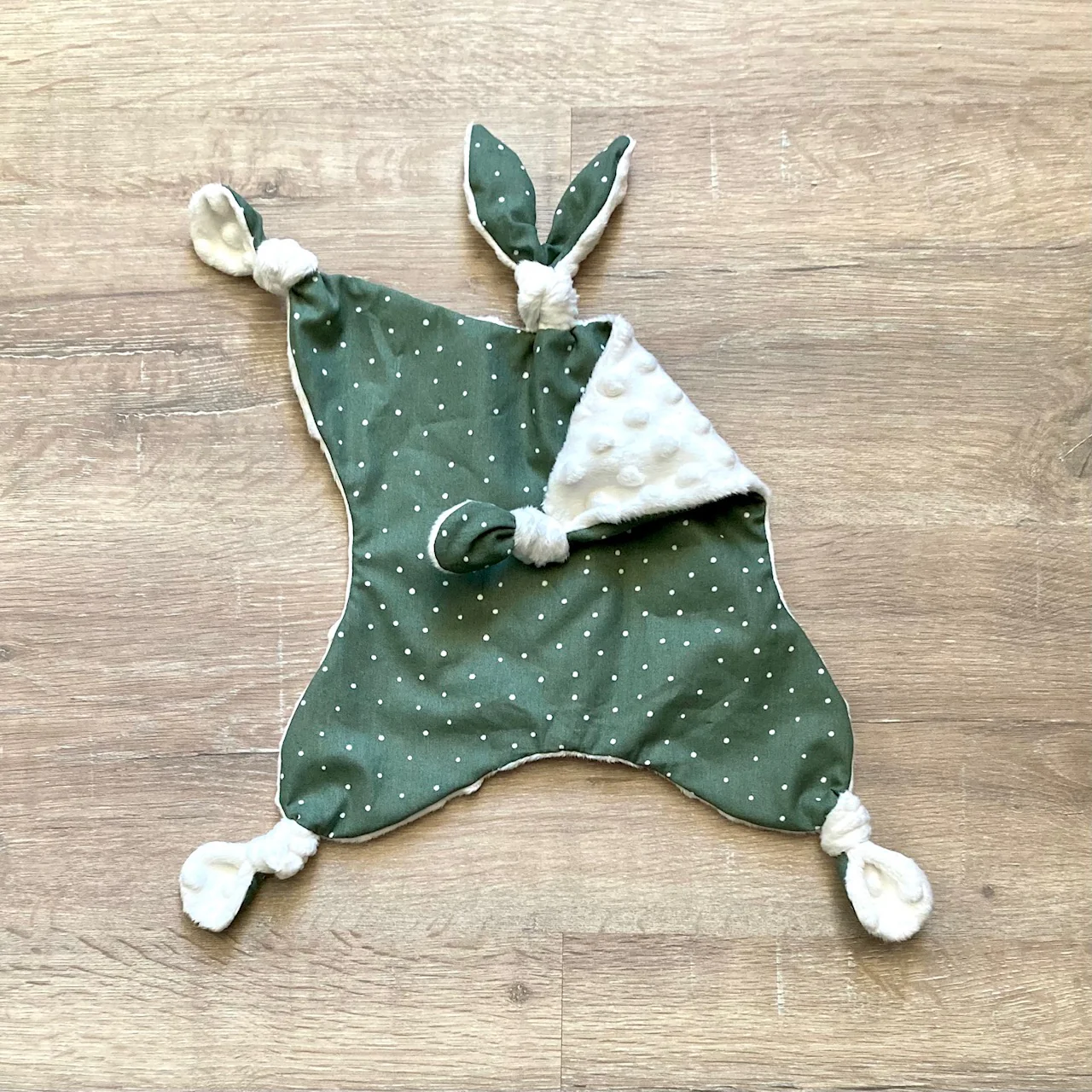 Les tissus utilisés sont Oeko Tex. Le minky (380g) est plus épais et encore plus doux que la plupart de ceux que vous pouvez trouver dans le commerce. Il est aussi plus facile à travailler.