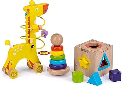 Fabriqué en bois robuste, ce jouet à plusieurs jeu propose aux petits d’apprendre et de différencier les couleurs et les formes, développer leurs capacités visuelles et leur coordination œil-main.