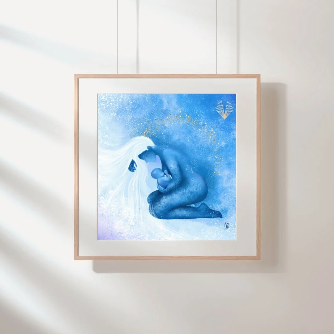 La mer Profondément reliée à plus grand que moi, Je vibre au rythme de l’eau Je vibre au rythme des vagues L’intensité de l’amour qui vient, revient et nous éclabousse comme l’écume, La vie qui nous traverse tantôt doucement, Tantôt avec fracas Et nos cœurs toujours à l’unisson. Impression en France avec amour sur papier d’art 324 g/m² Numérotée et signée à la main au verso, 100 tirages