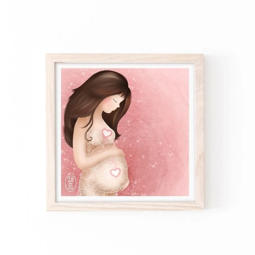 Maternité et Naissance en conscience – « Les mots d’amour que vous échangez déjà » Illustration positive et apaisante pour préparer la naissance issue d’une visualisation de sophrologie qui consiste à voir le lien lumineux qui unit la maman à son bébé… et qui perdurera, même après la naissance. Impression en France avec amour sur papier irisé Signature à la main au verso