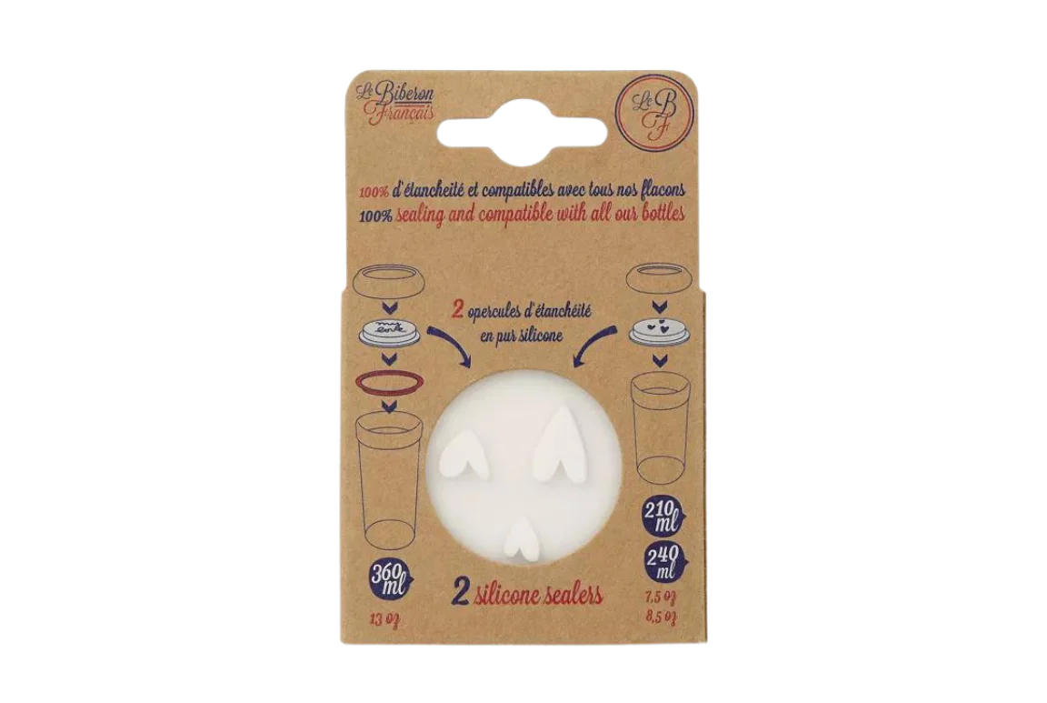 Ces deux couvercles en pur silicone transforment instantanément chacun des biberons en pots de conservation.
