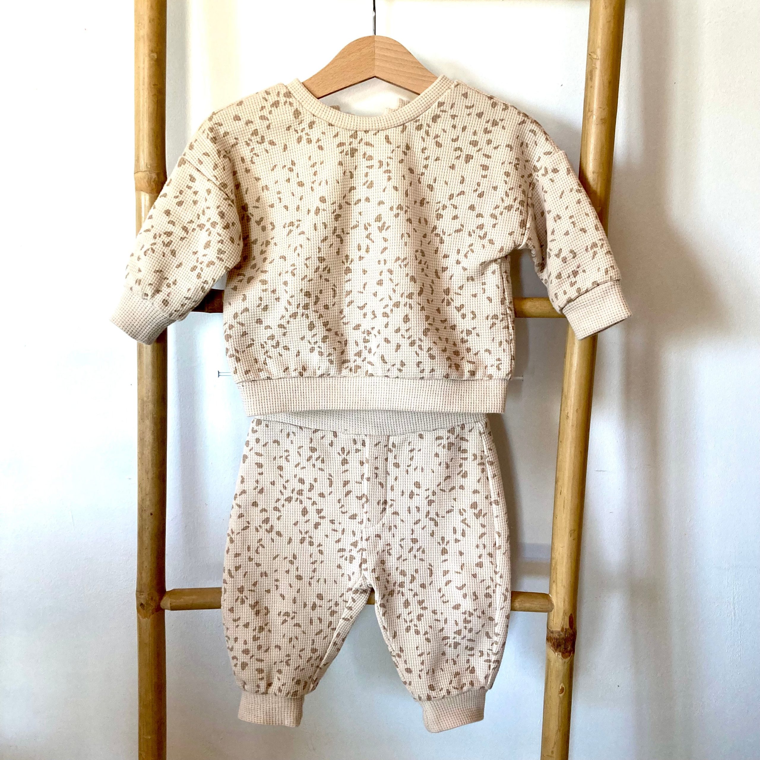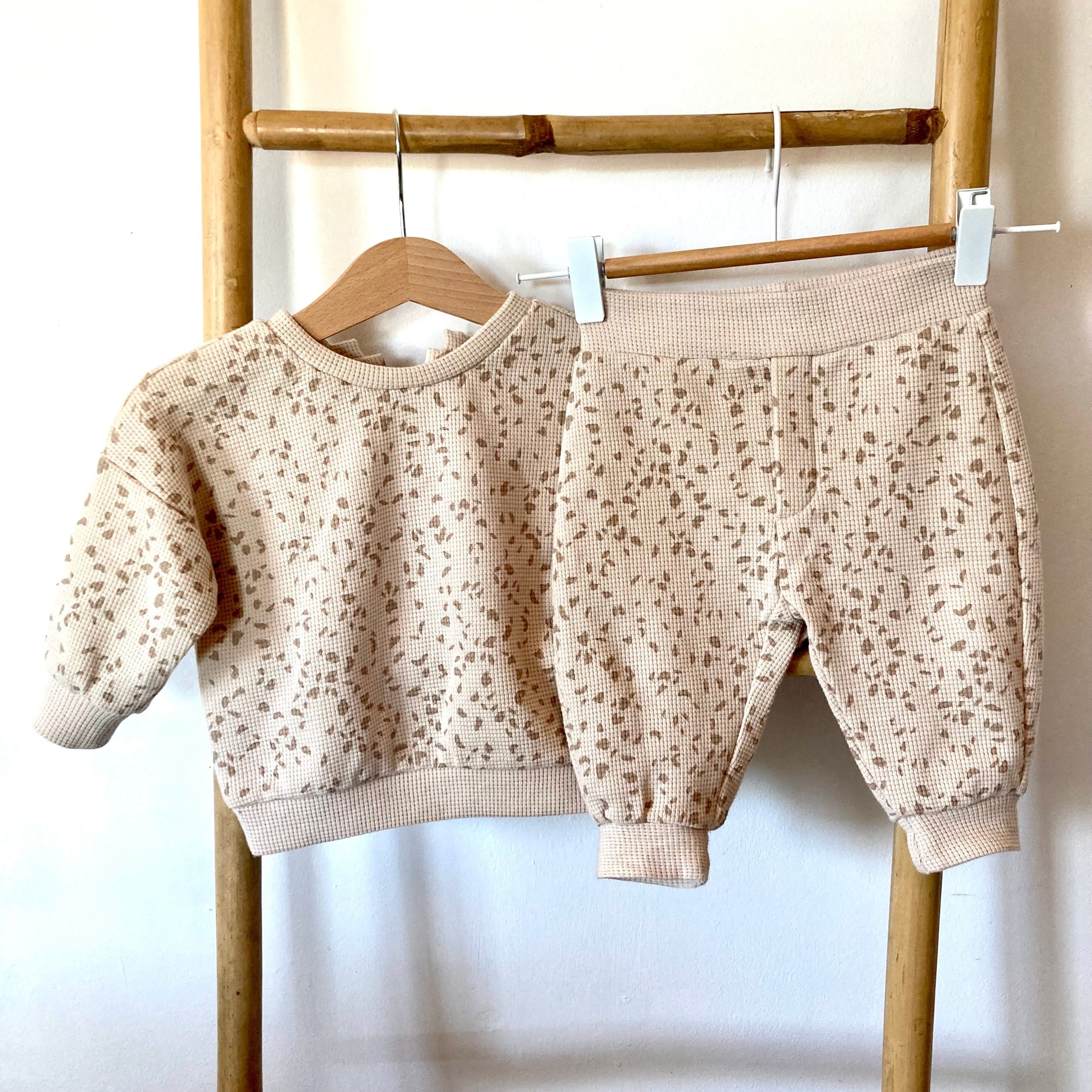 J’ai réalisé ici l’ensemble Sauterelle en Jersey Nid d’abeille Granito.