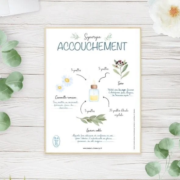 Dans la trousse de naissance , à préparer à l’avance dans un petit flacon Sur le plexus solaire et sur la face interne des poignets, 3 à 4 gouttes dès que les contractions ont commencé. En portant le poignet sous les narines, inhaler par une longue et profonde inspiration. À répéter selon les besoins, aussi souvent que souhaité. Pourquoi ces trois plantes ? La camomille noble met ce moment précieux dans la lumière (j’adore ✨) Le saro ou mandravasarotra, littéralement “qui protège des mauvais esprits”, est utilisé par les sages-femmes à Madagascar Le Laurier noble apporte force intérieure et confiance…