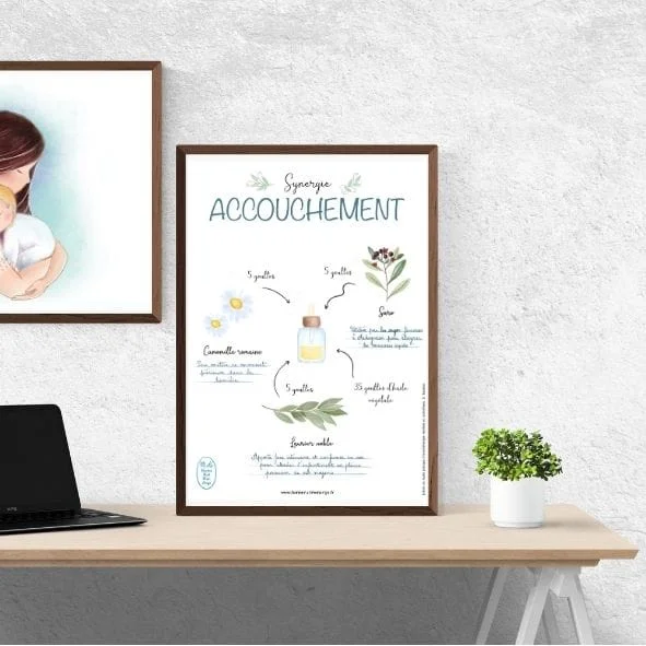 Affiche de préparation à l’accouchement physiologique pour jeune maman, doula ou sage-femme : La gestion des contractions