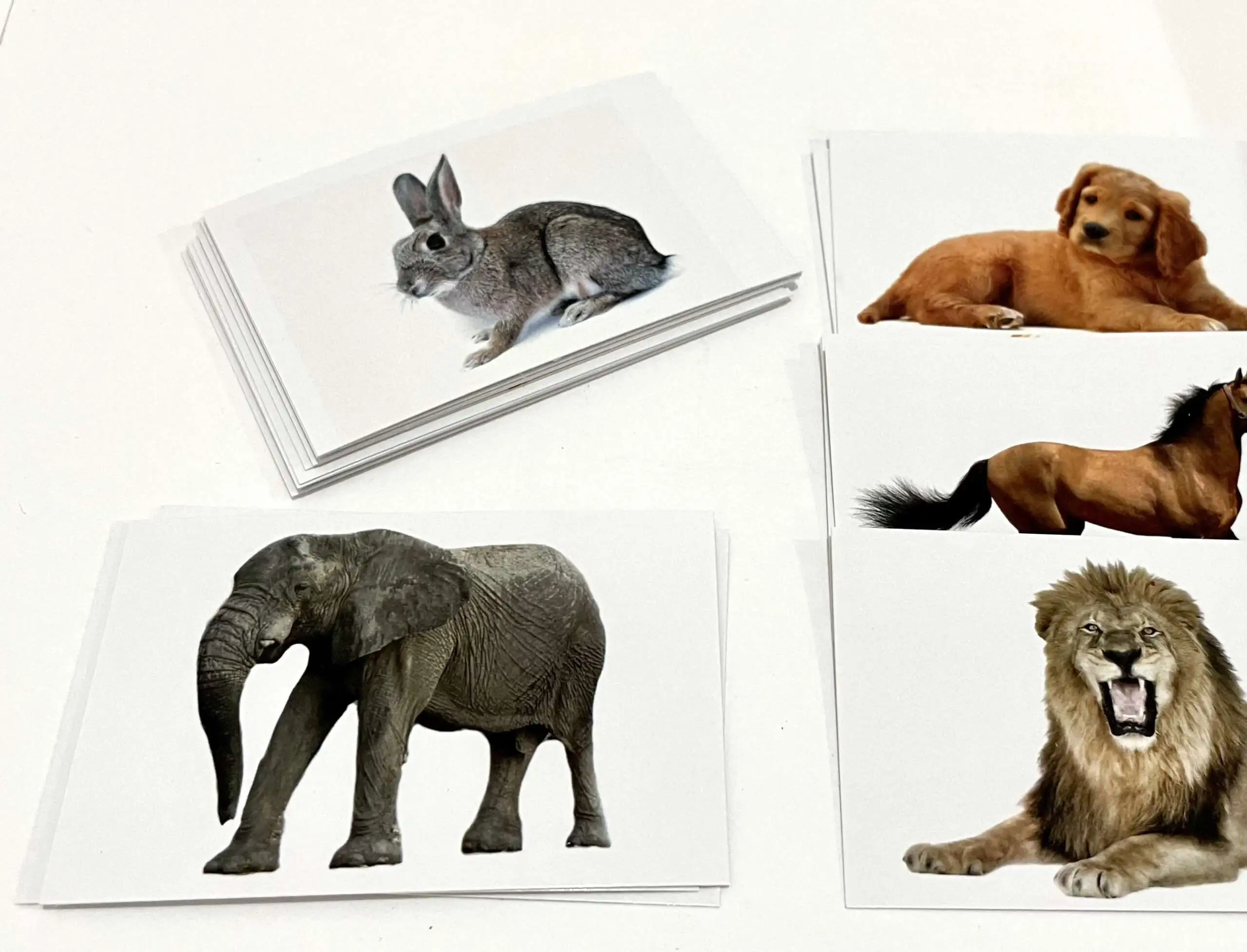 L’activité de classification la plus simple consiste à classer les cartes en fonction de la catégorie à laquelle elles appartiennent (fruits, animaux, vêtements, etc.)